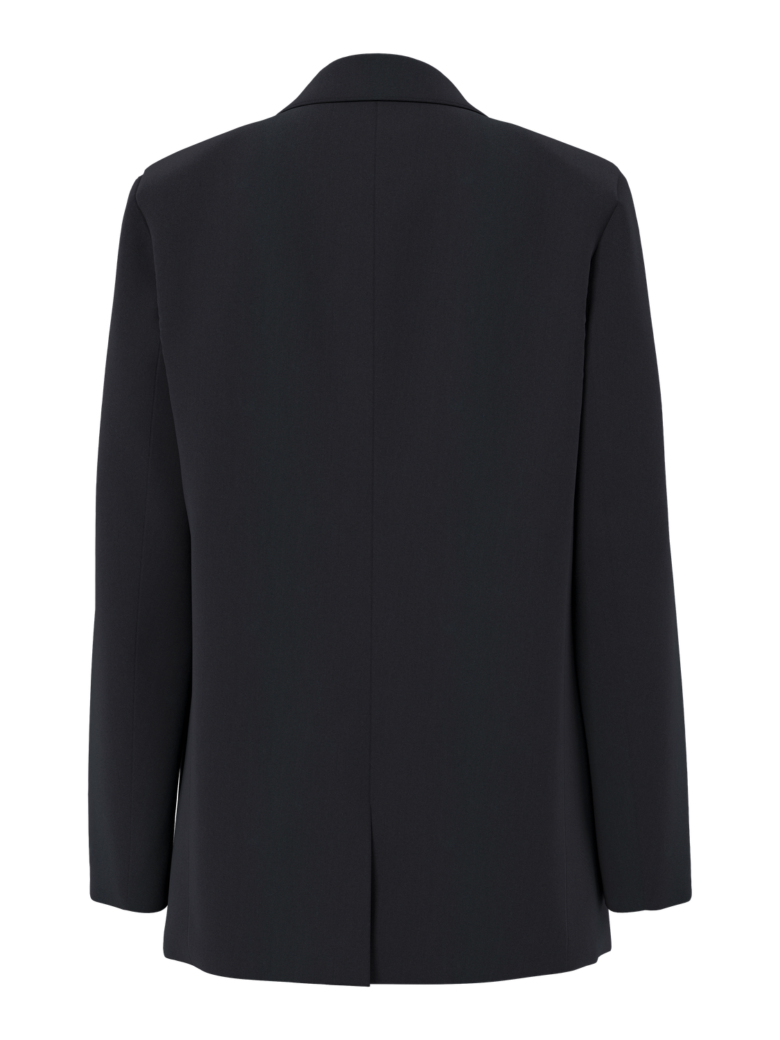 This loose blazer has an oversized fit and a classic collar, giving it an elegant and relaxed look. The black color makes it easy to combine with both everyday clothes and more formal outfits. The blazer is made from a mixture of recycled polyester, polyester and elastane, which ensures both comfort and freedom of movement. It has side pockets and a recycled polyester lining, which contributes to a comfortable fit.