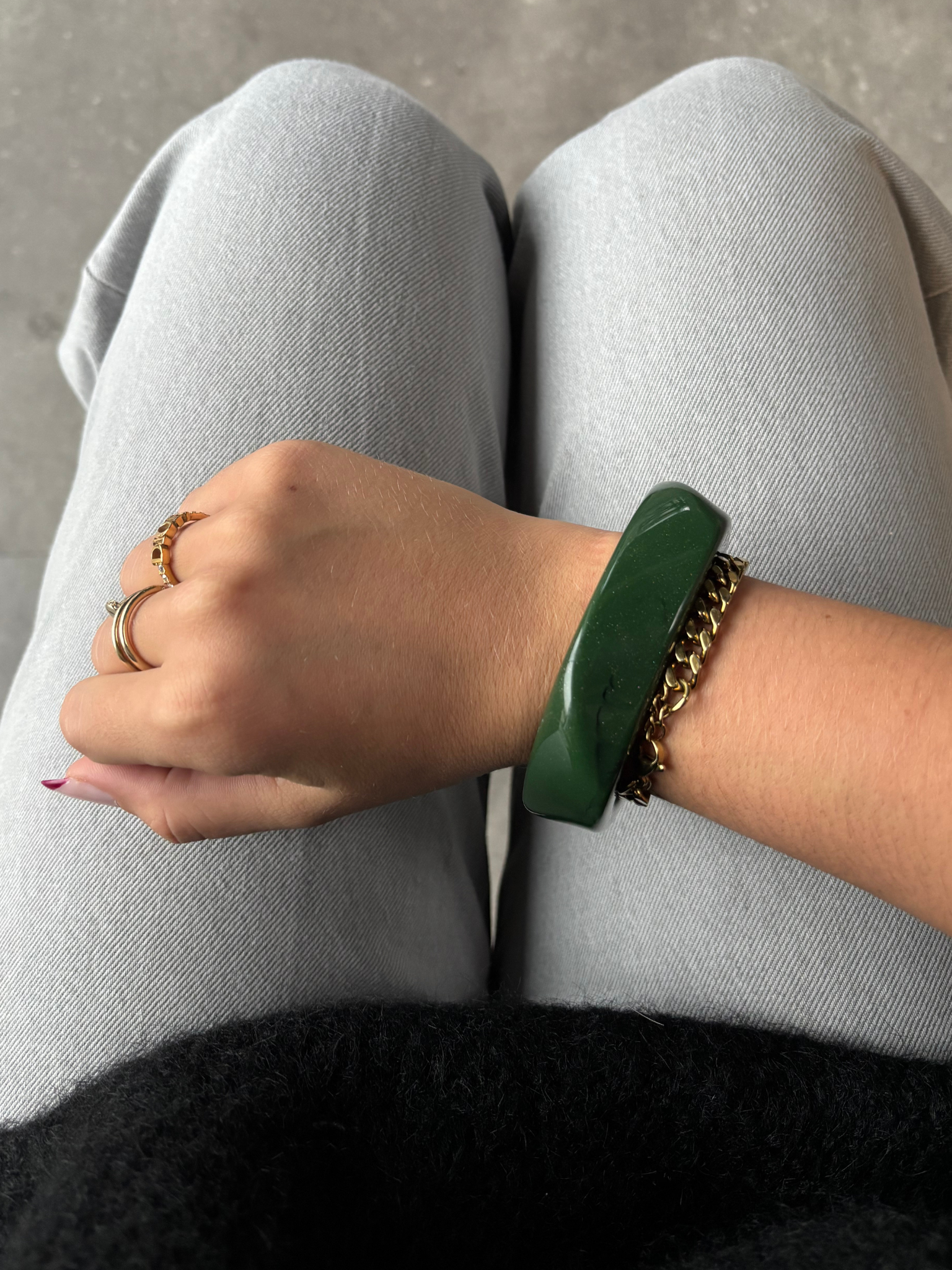 Beautiful & trendy bracelet in a chunky shape. Each bracelet is unique and has its own color nuances. Wear them with bare arms - or over your favorite shirt or knit!
