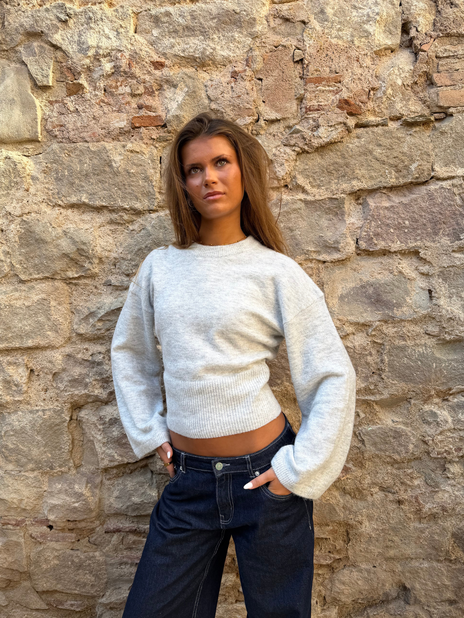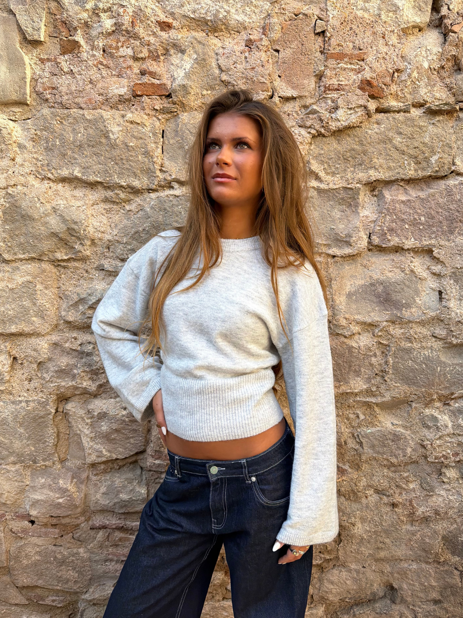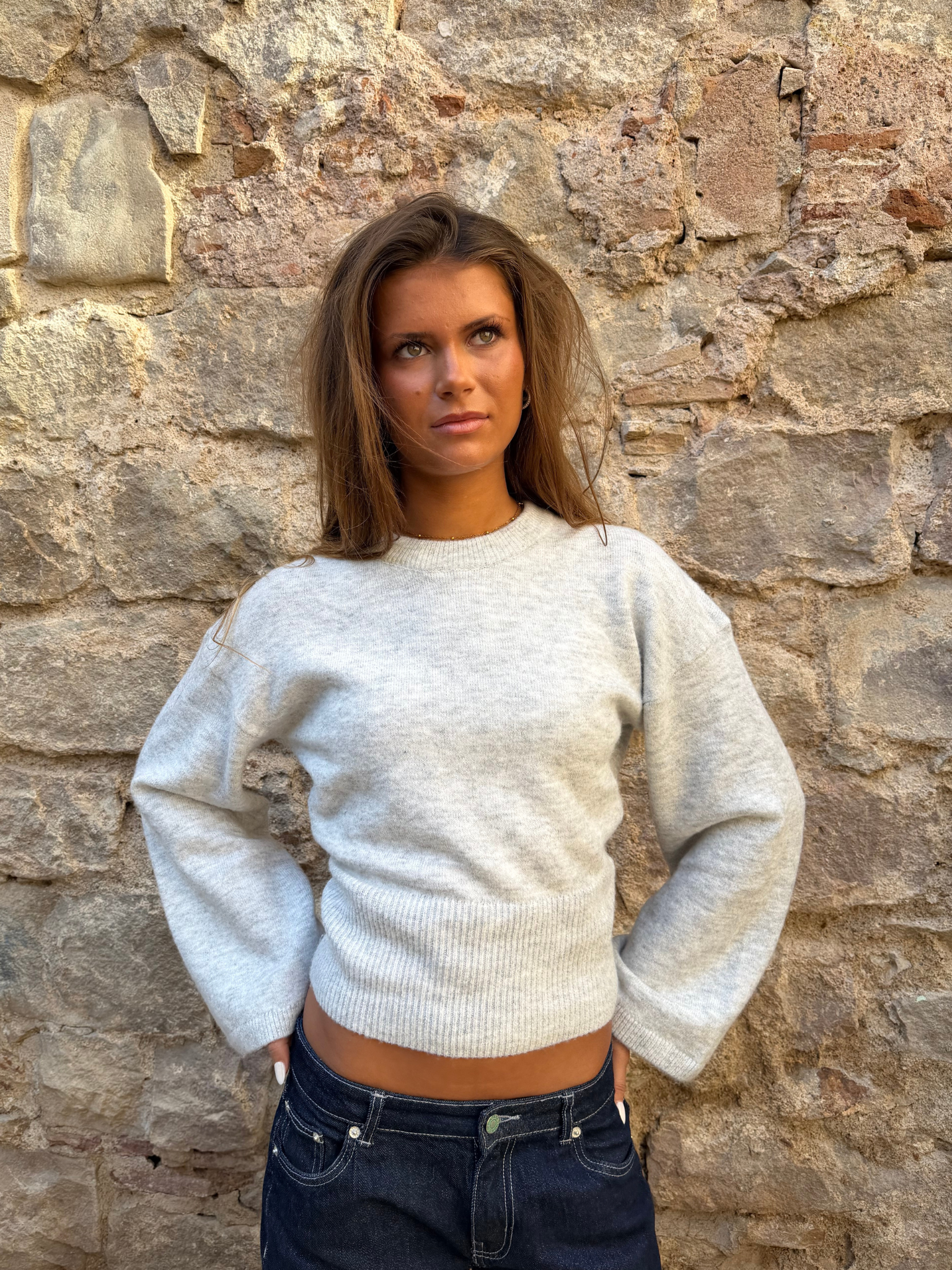 ELLEN ANGEL SLEEVE KNIT - LT GREY
