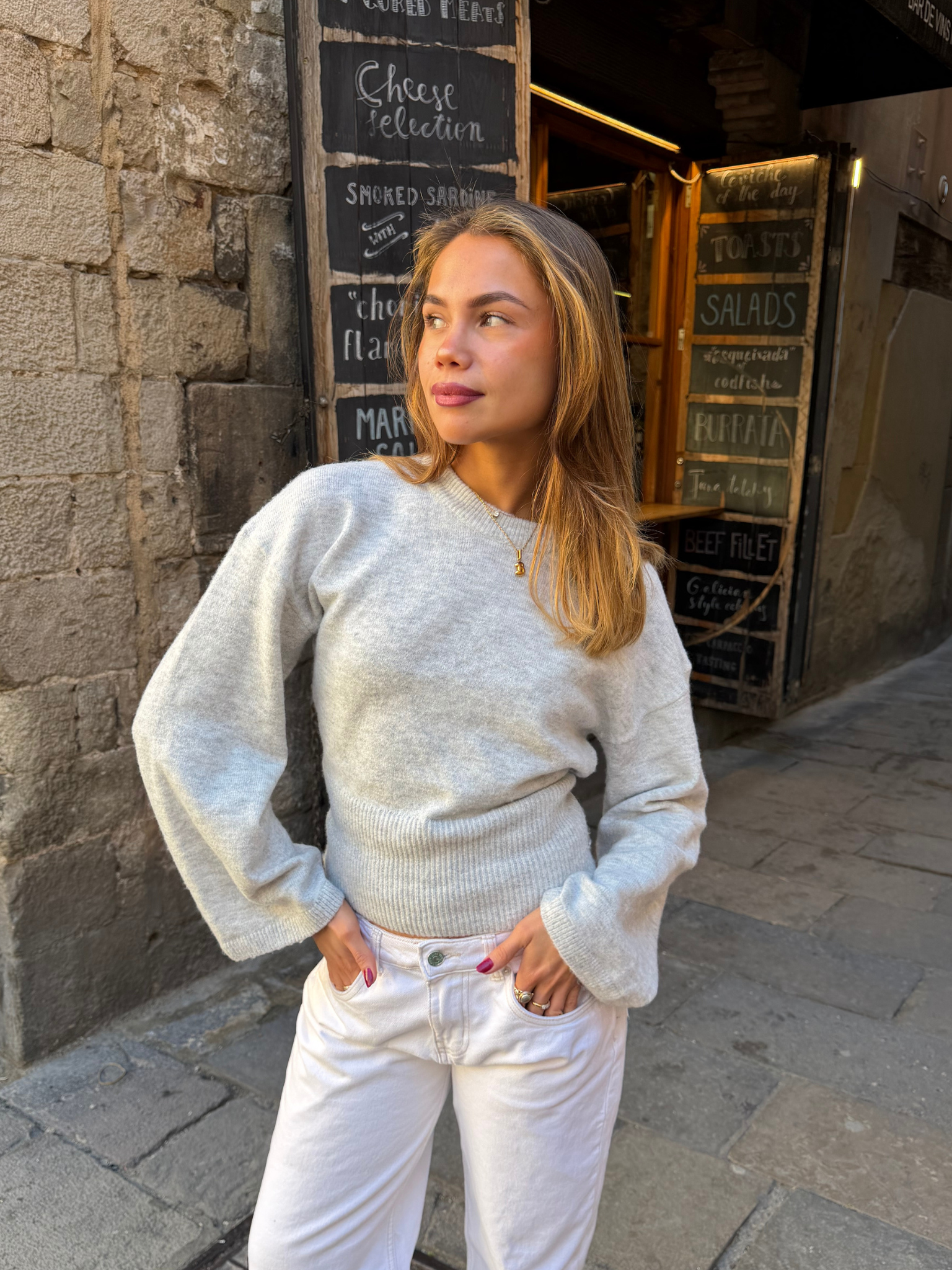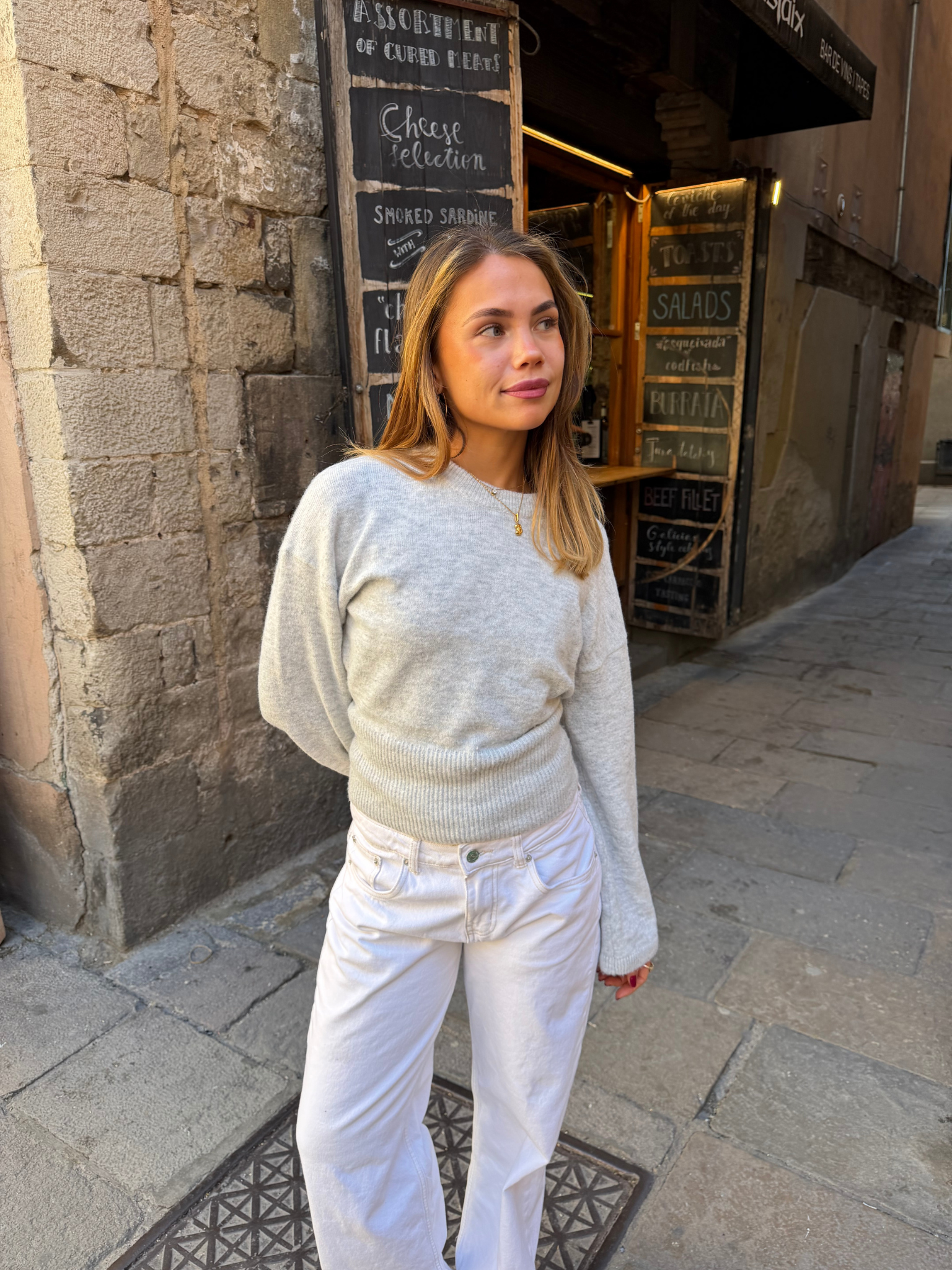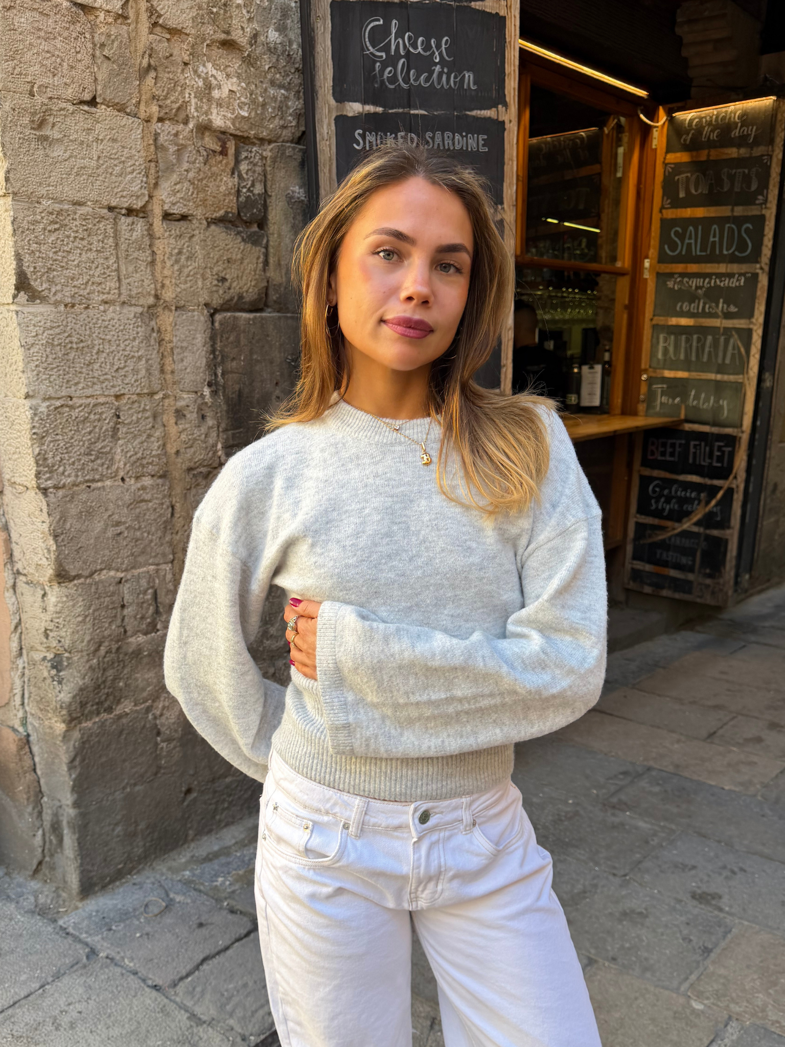 ELLEN ANGEL SLEEVE KNIT - LT GREY