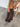 Fine fold-down boots in vegan suede... Small heel and comfy fit.. Vintage in expression with blue "wear" on the toe