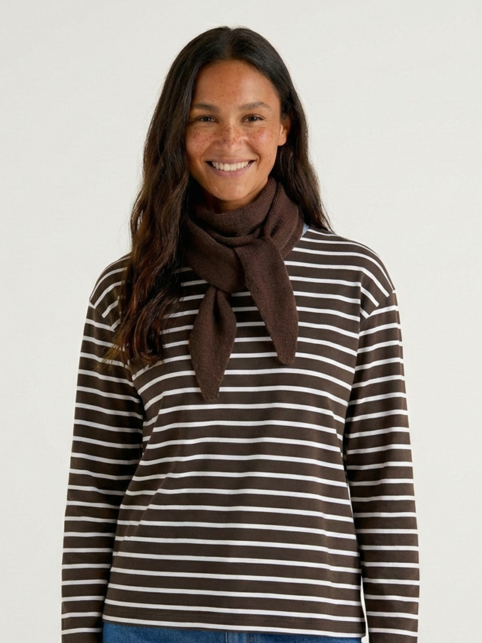 This triangle scarf in a warm, dark brown shade is the ideal accessory for fall. The soft material combines LENZING™ ECOVERO™ viscose with polyester and nylon, giving it a light and comfortable feel with a supple fit reminiscent of silk. The scarf has a one-size fit, making it easy to style with different outfits and keep you warm on chilly days.