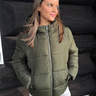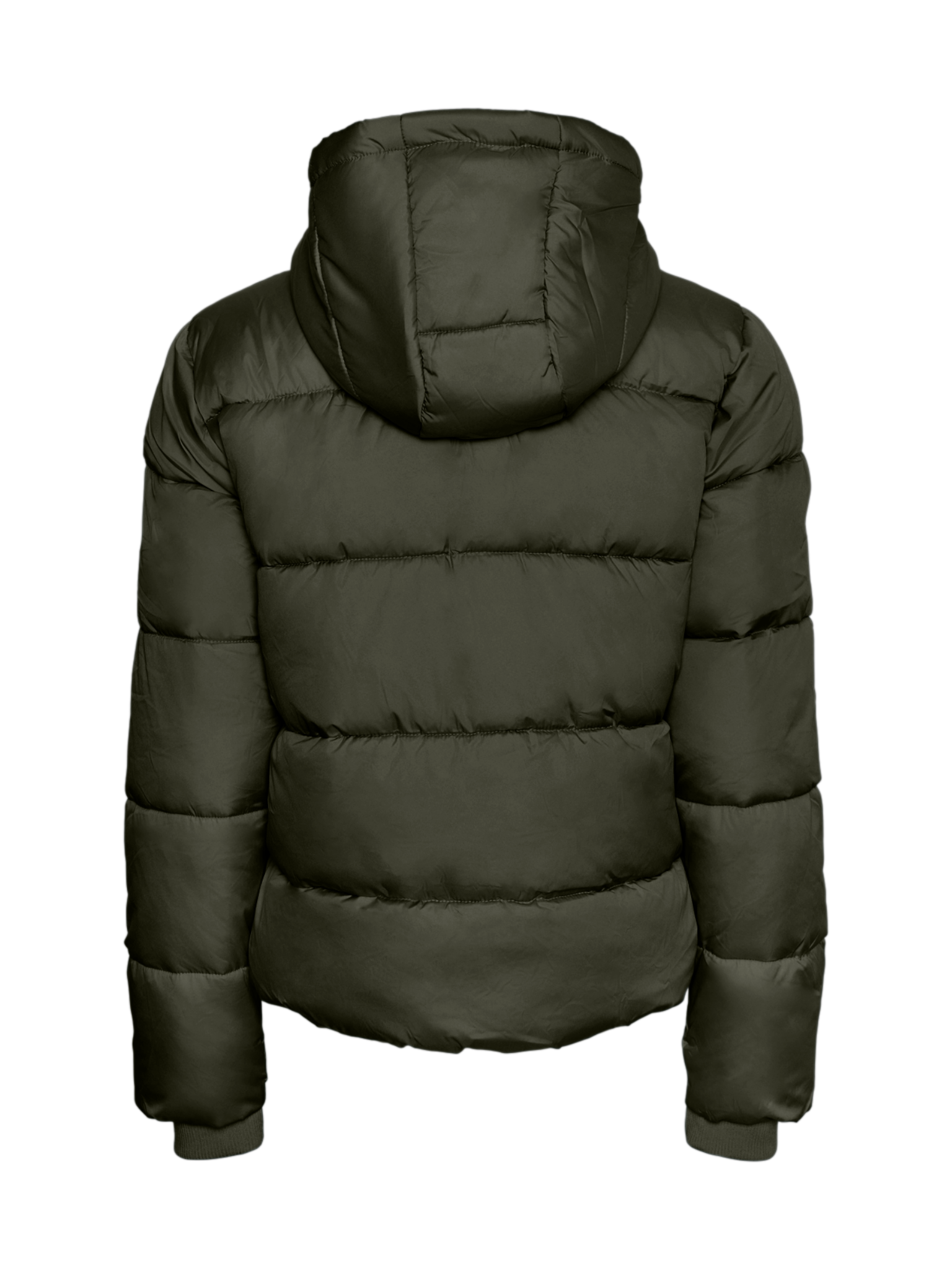This short puffer jacket with hood is the ideal choice for the fall season. The jacket is made of 100% recycled polyester, which provides a light yet warm experience. It has long sleeves with ribbed cuffs and a practical zip closure that ensures a close and comfortable fit. With its side pockets, it is both functional and stylish in a dark green design that is suitable for both everyday and leisure use.