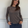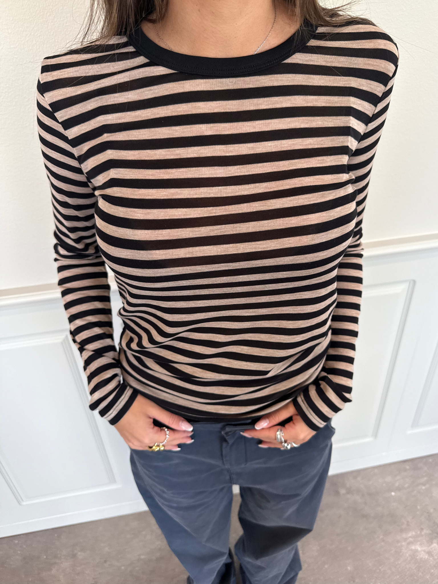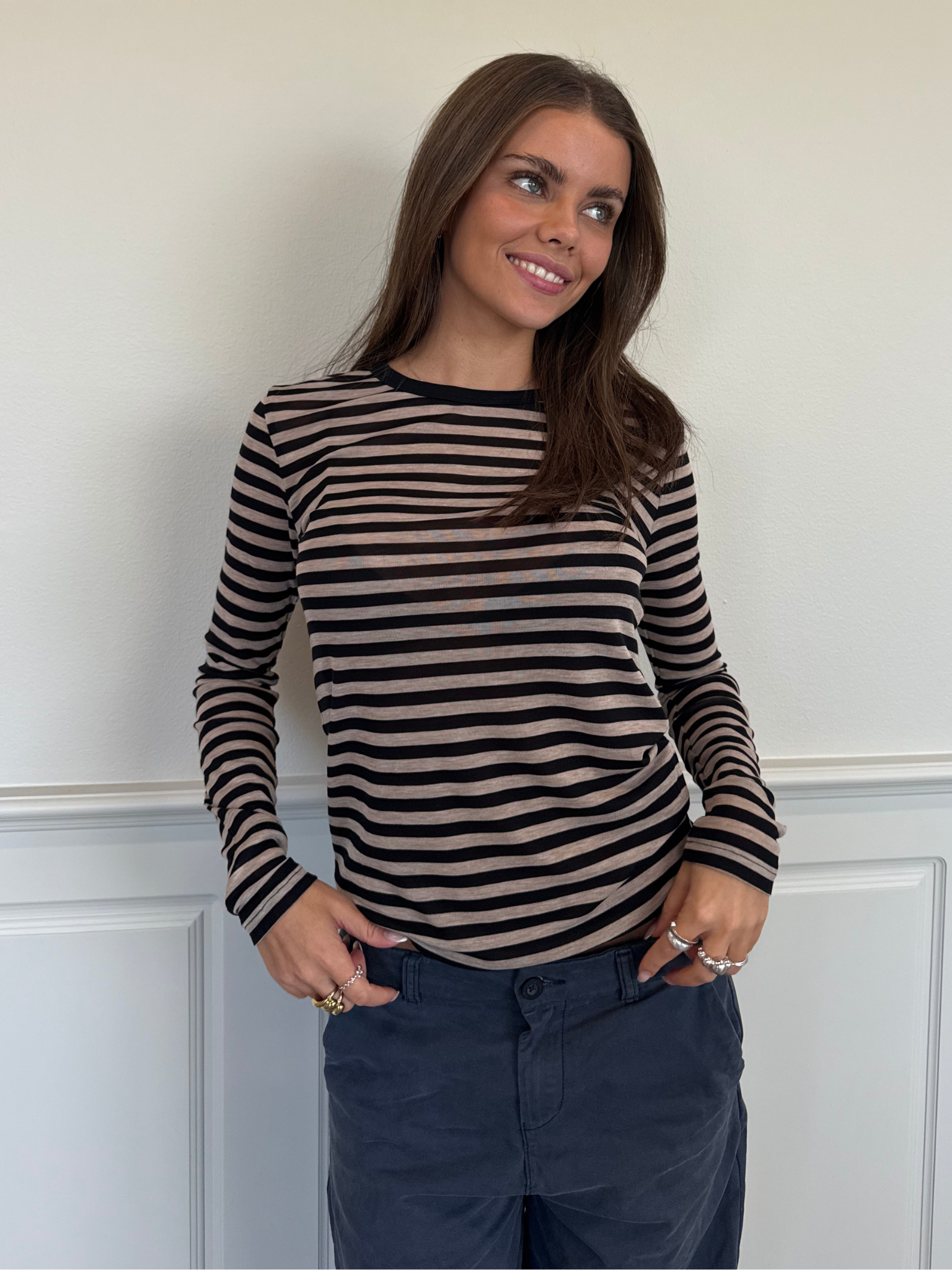 Nice striped blouse with long sleeves in black/brown - in the most beautiful thin material that feels like a light knit..