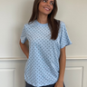 The lightweight and comfortable Dot Tee is perfect for everyday casual styles. With its round neck and short sleeves, it has a classic and timeless cut that suits most occasions. The maritime blue color is adorned with a discreet all-over print of small dots, which adds a stylish and feminine touch. Made of 100% cotton, this t-shirt offers both comfort and breathability, making it ideal for everyday wear.