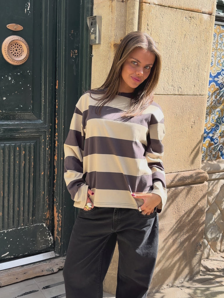 HAPPY STRIPE TEE - BROWN/WHITE €19,95 EUR /