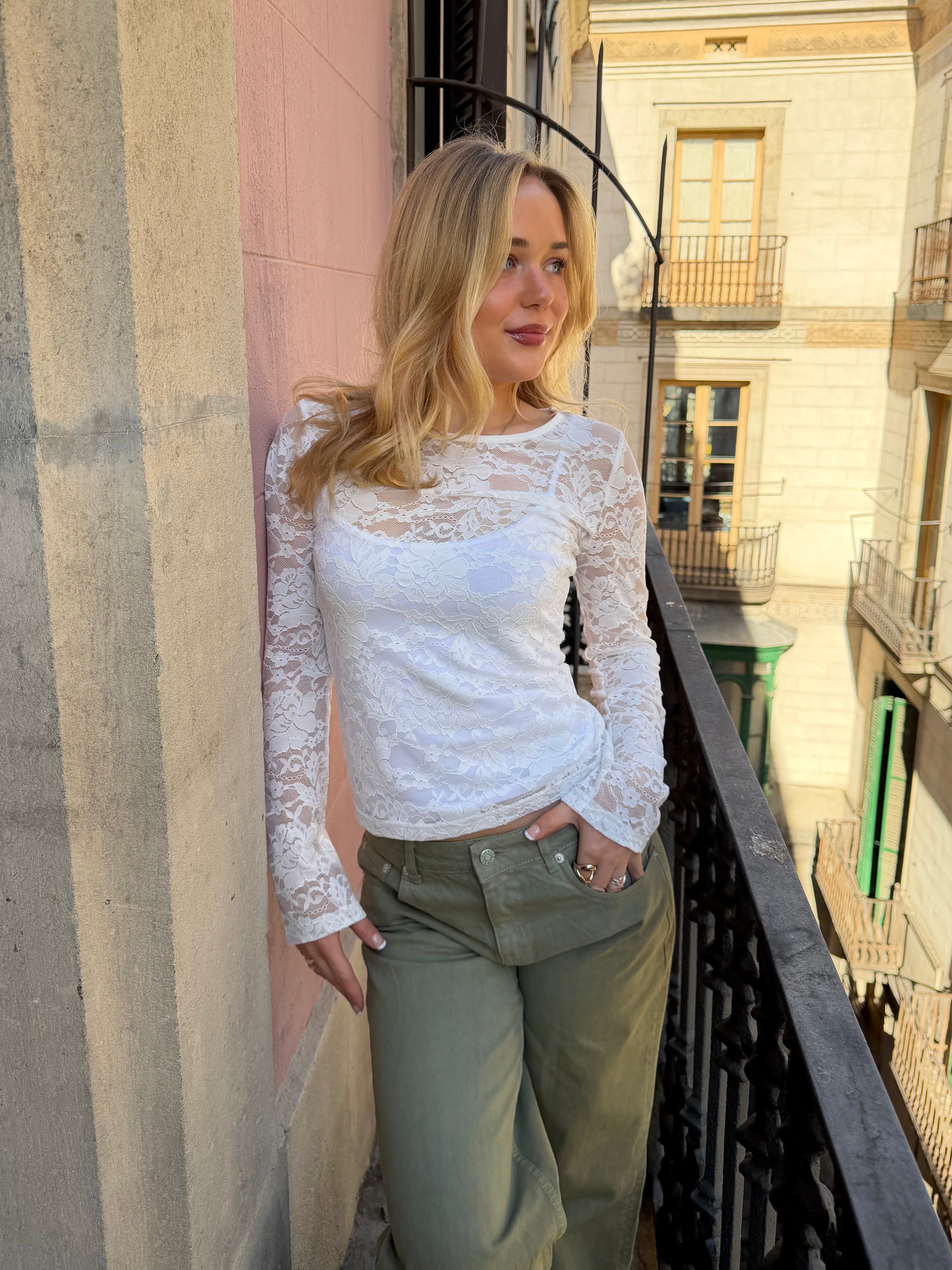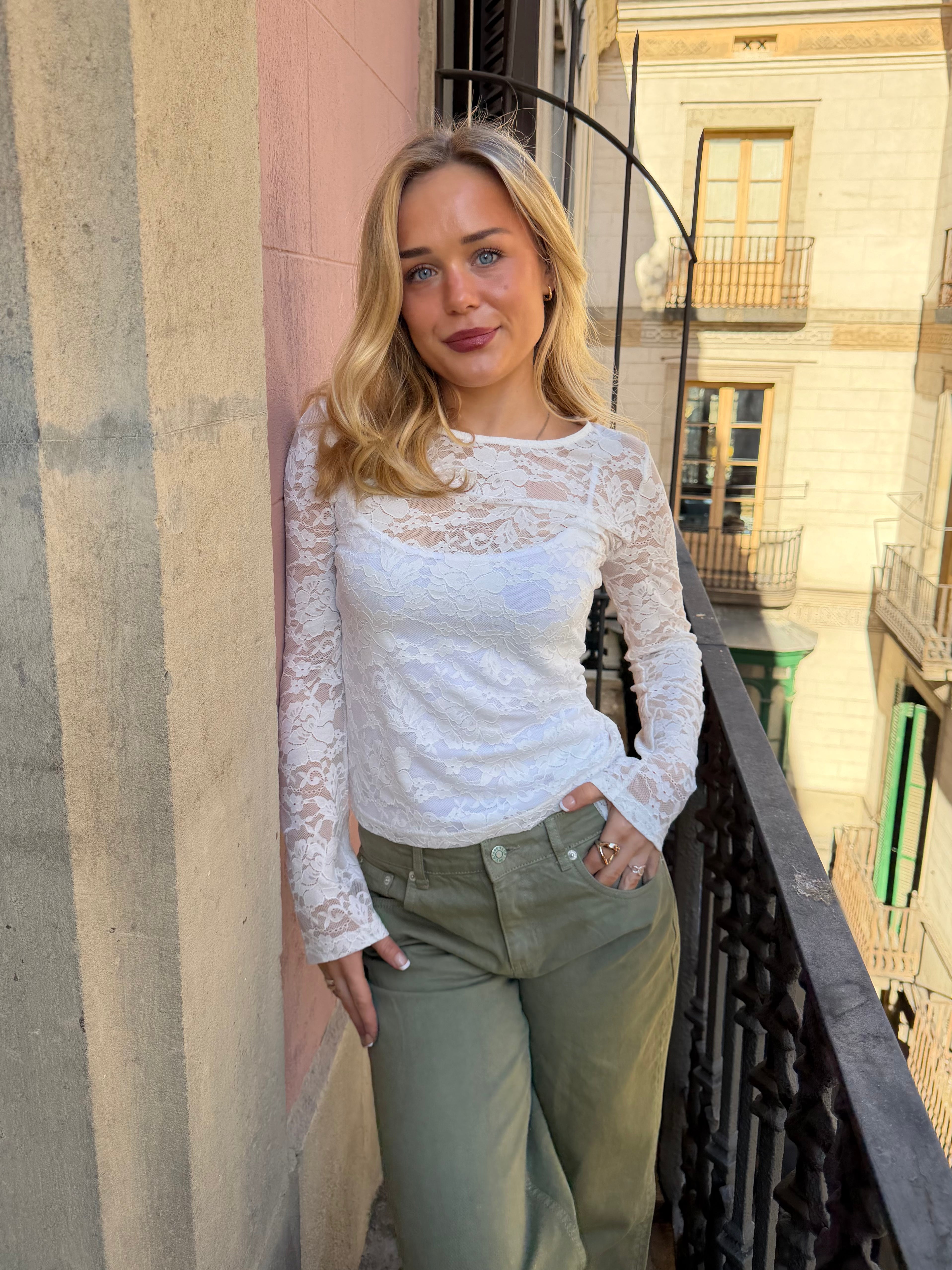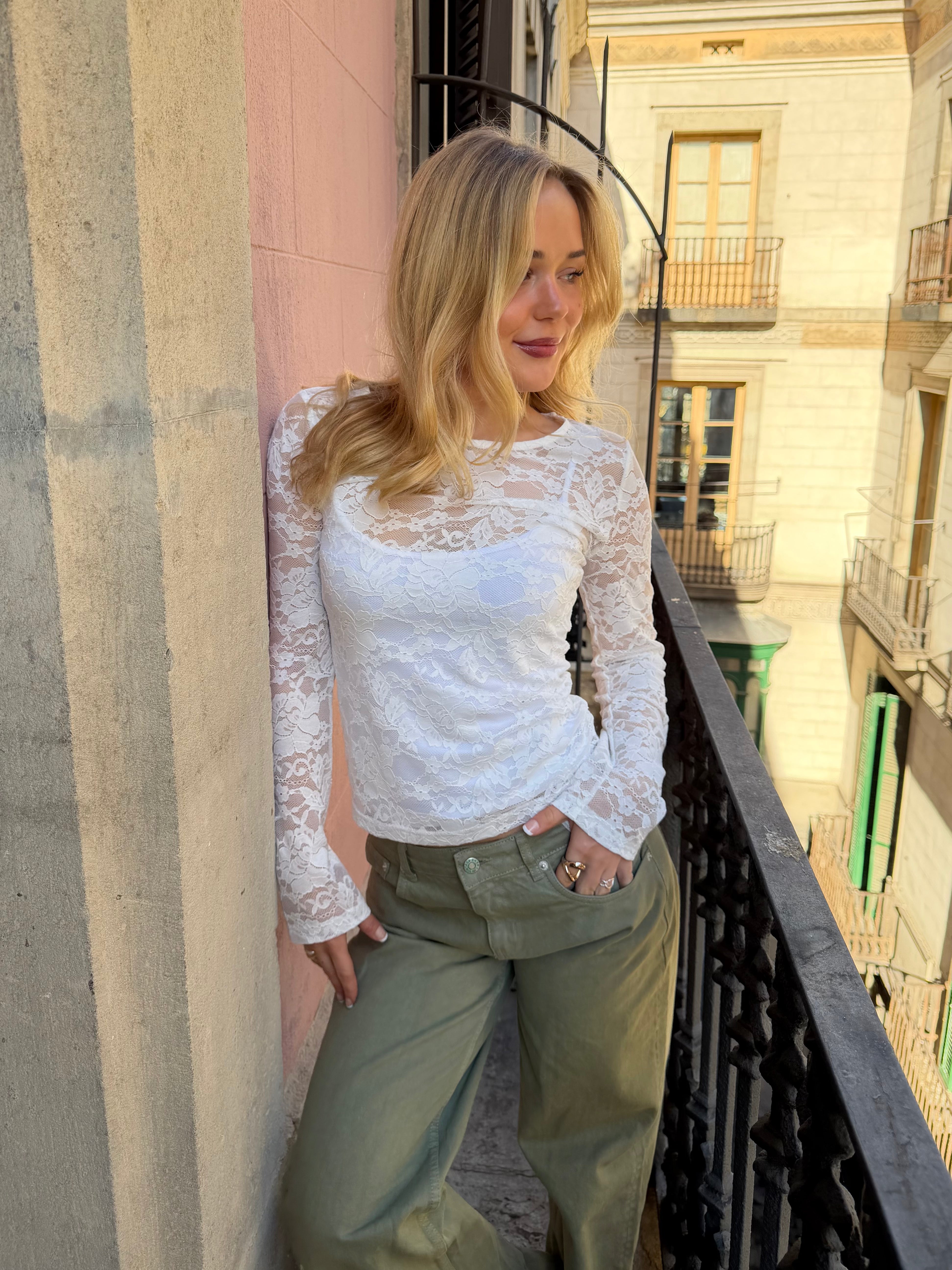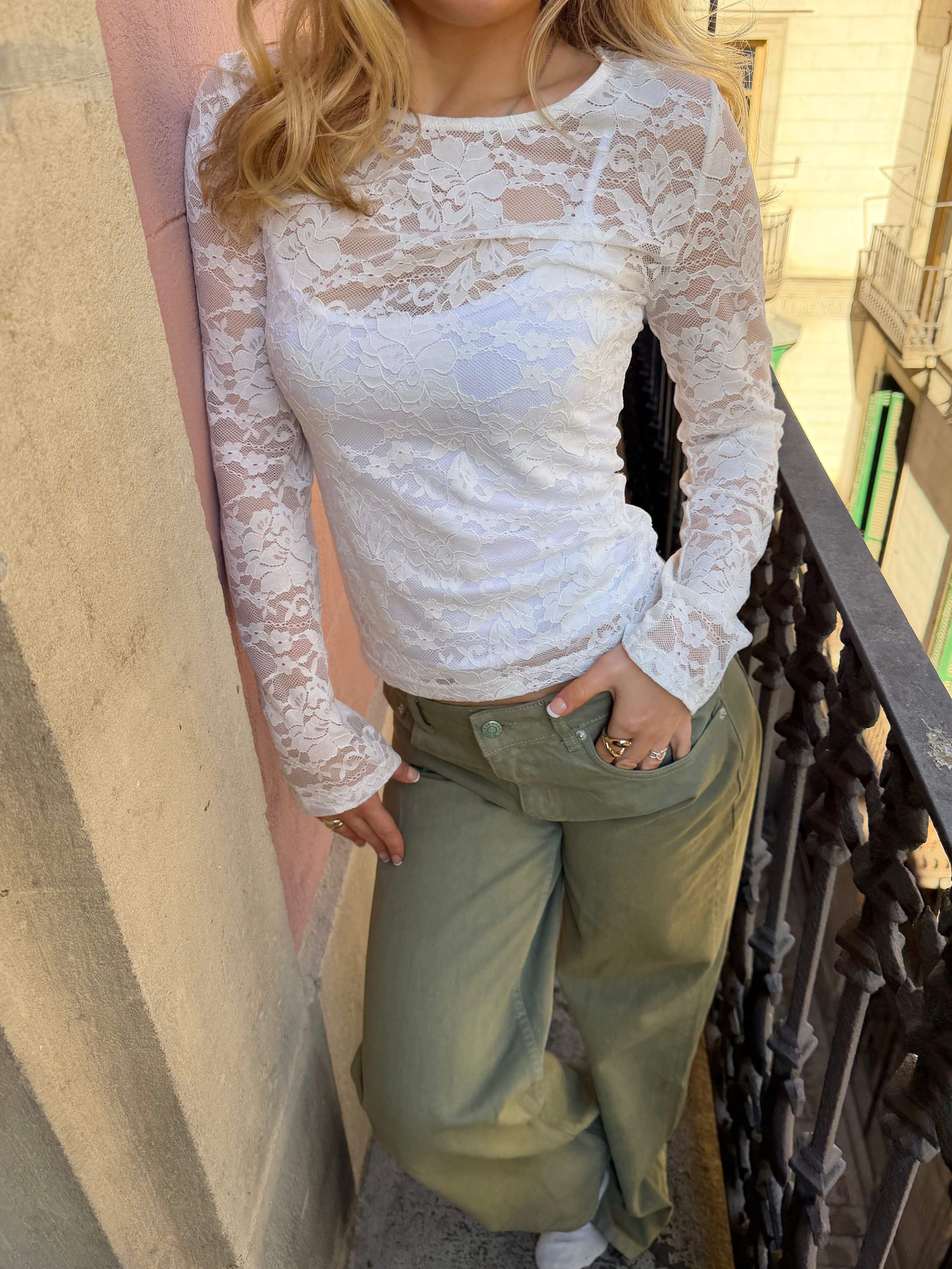 Super fin lace top med lange ærmer - helt perfekt at have under din oversize tee, skjorte eller strik - eller bær den i byen med en top under...