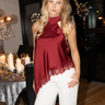 Super nice satin lace top with halterneck in a beautiful dark red color..