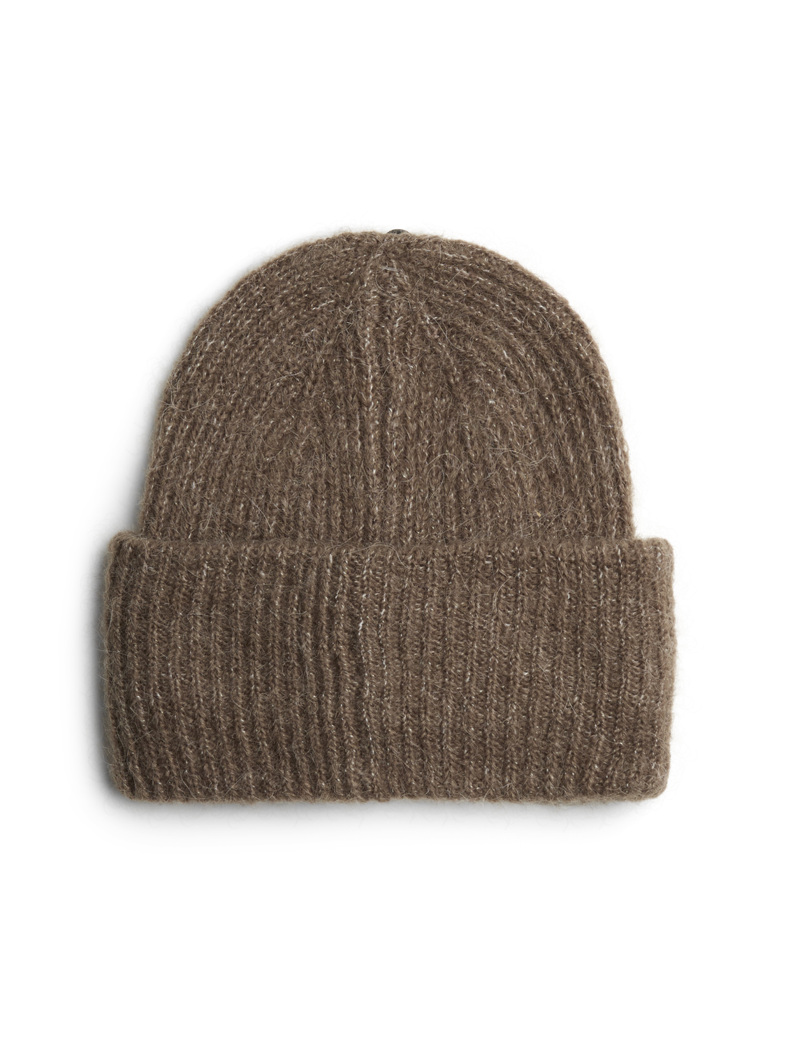 This hat is made in a ribbed knit construction that provides a sturdy and warm structure perfect for fall and winter. The soft blend of alpaca, nylon and acrylic ensures both comfort and warmth on cold days. The color of the hat in a subdued "Morel" shade makes it easy to combine with different outfits.
