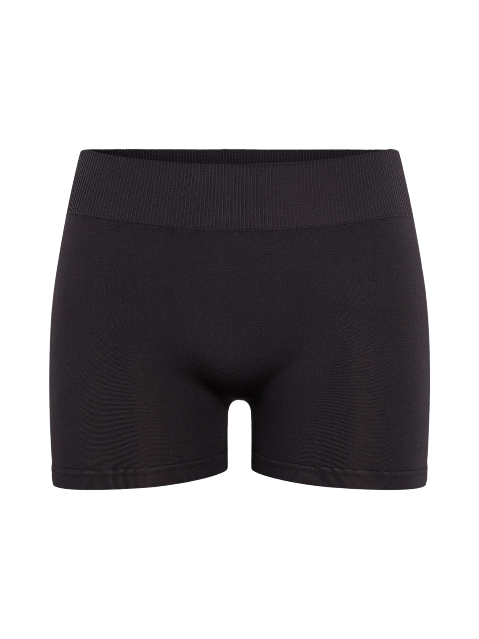 Mini shorts in black, made with a focus on comfort and durability. The material composition with recycled nylon creates a light and strong fabric, which is also soft and flexible thanks to the elastane content. These shorts are inspired by casual pajama style and are perfect as comfortable underwear for everyday use.