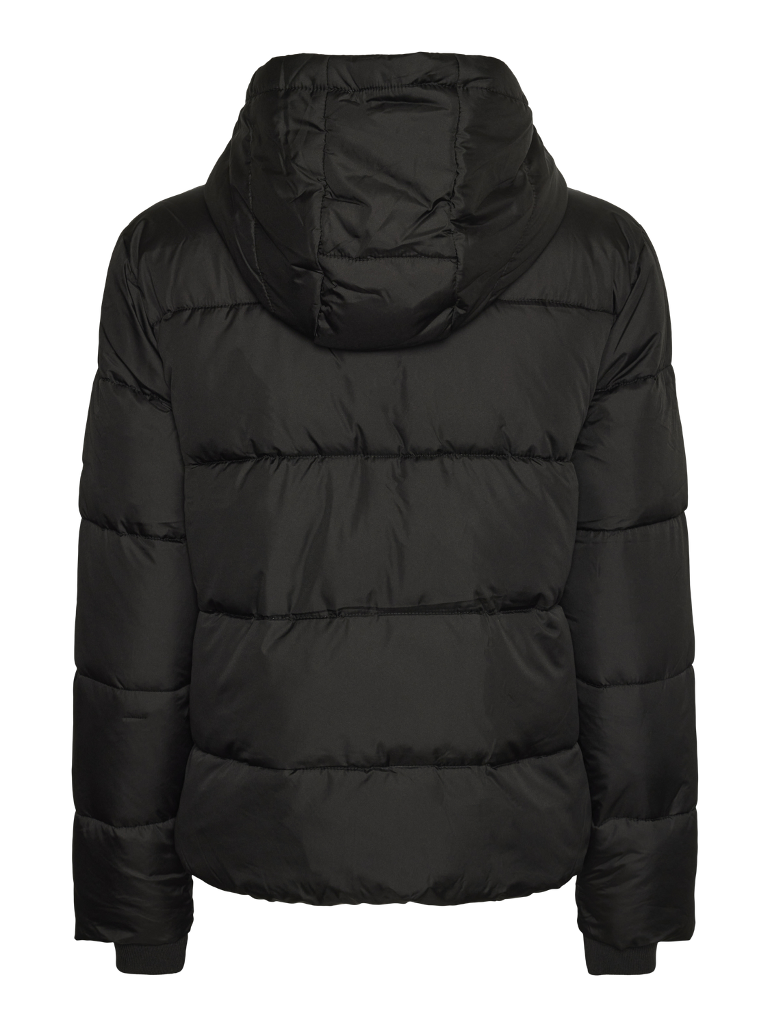 This short puffer jacket is designed for young women and combines functionality with a modern look. The jacket has a practical hood and long sleeves with ribbed cuffs, ensuring a close fit and extra comfort. Lined with polyester padding, it provides warmth, while the black color makes it easy to combine with different outfits. The jacket closes with a zipper and has side pockets for storing small items.