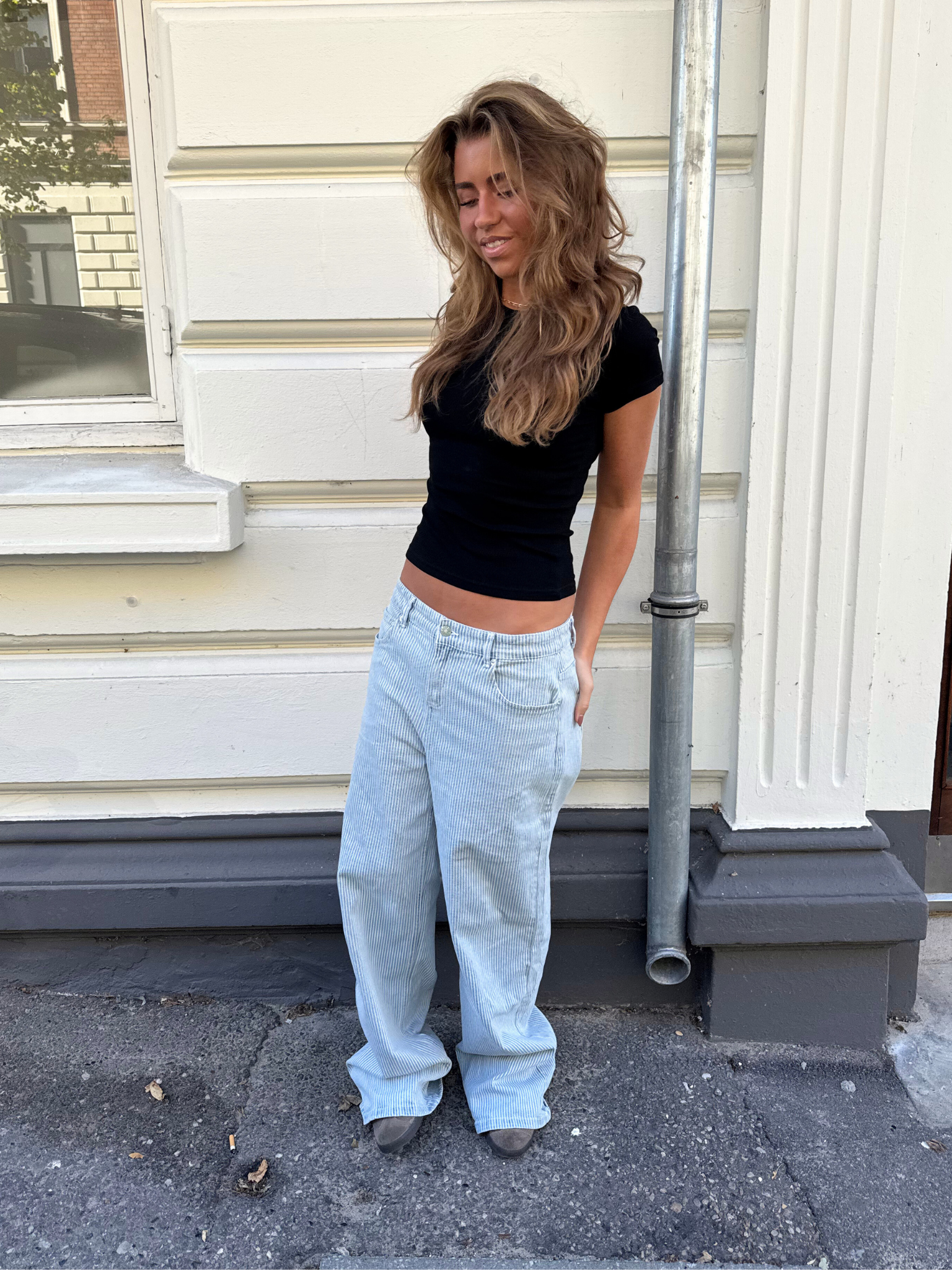 Get the perfect trendy look with ALMA JEANS - LIGHT STRIPE! 👖 These popular jeans are based on our popular baggy Esther jeans - just with a slightly higher waist...