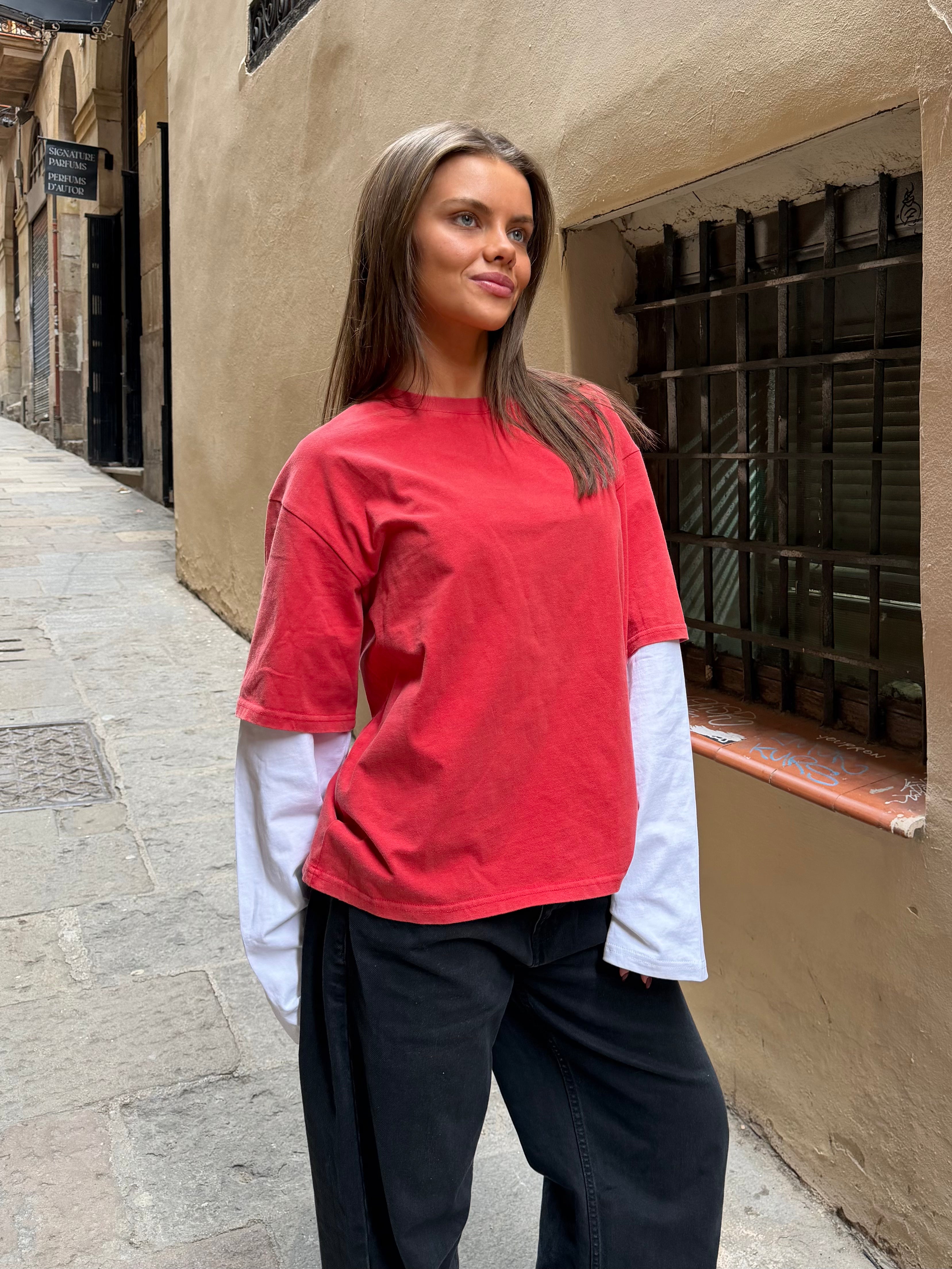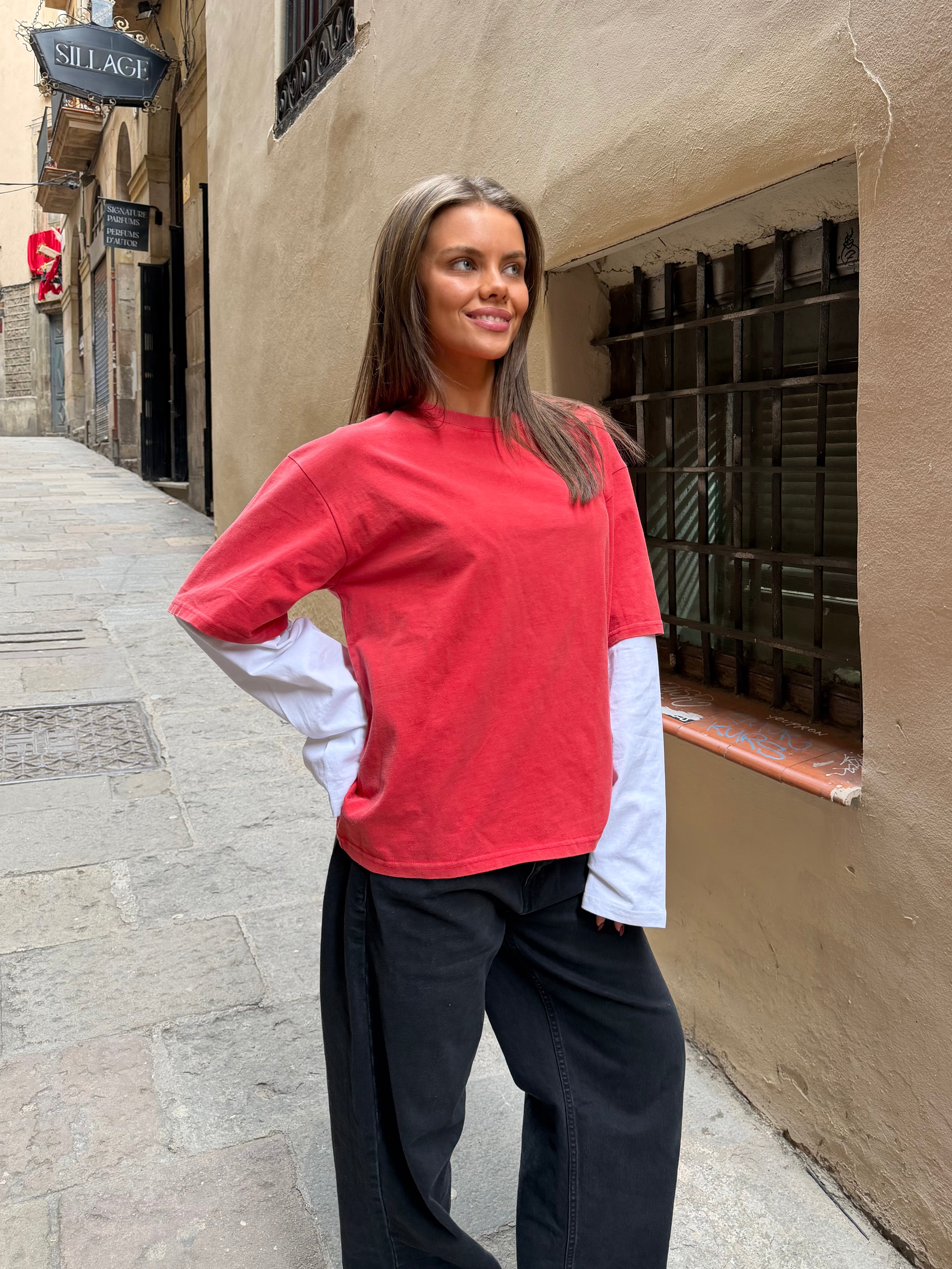 ALVIA LAYERED TEE - RED/WHITE