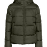 This short puffer jacket with hood is the ideal choice for the fall season. The jacket is made of 100% recycled polyester, which provides a light yet warm experience. It has long sleeves with ribbed cuffs and a practical zip closure that ensures a close and comfortable fit. With its side pockets, it is both functional and stylish in a dark green design that is suitable for both everyday and leisure use.