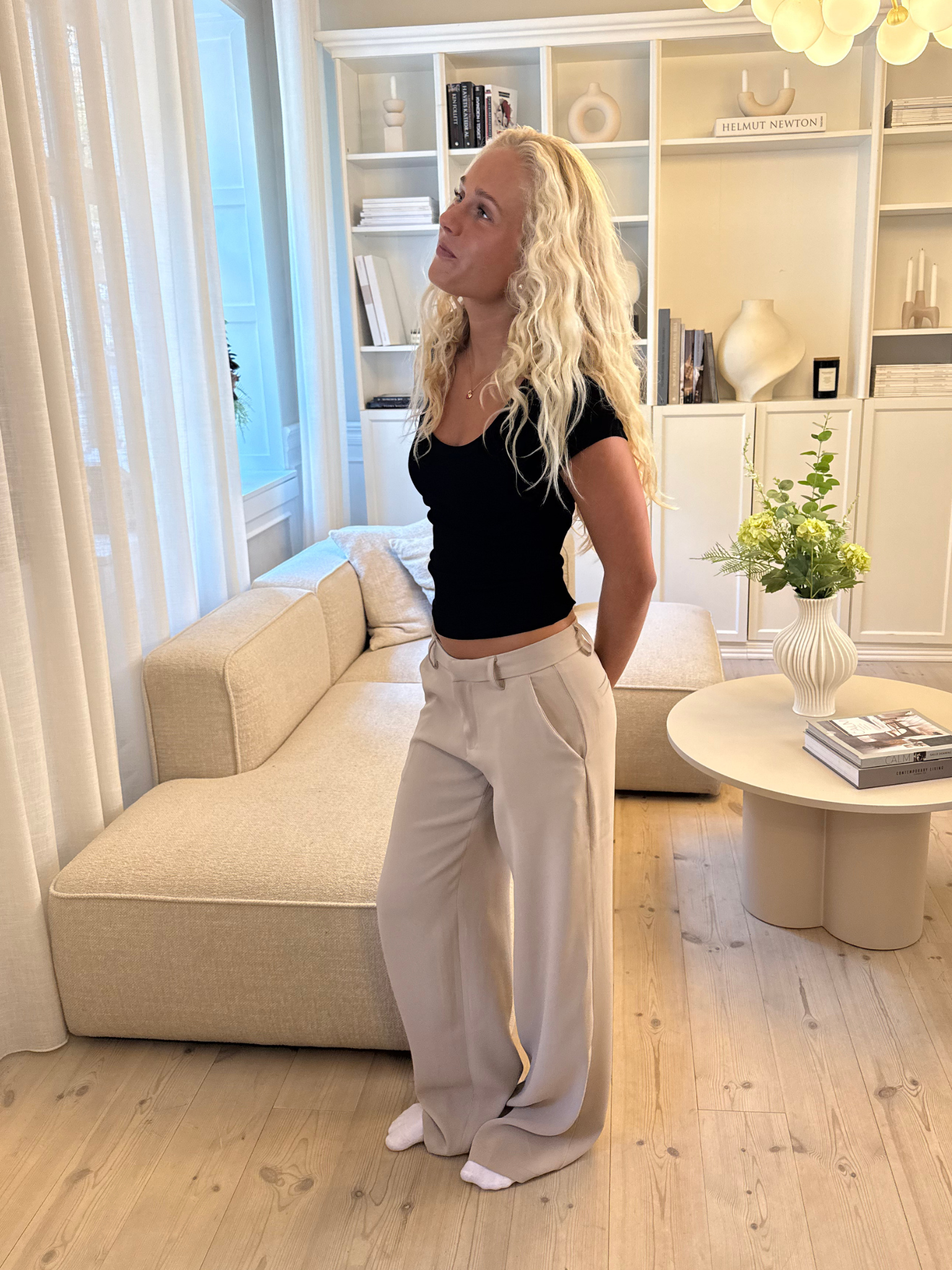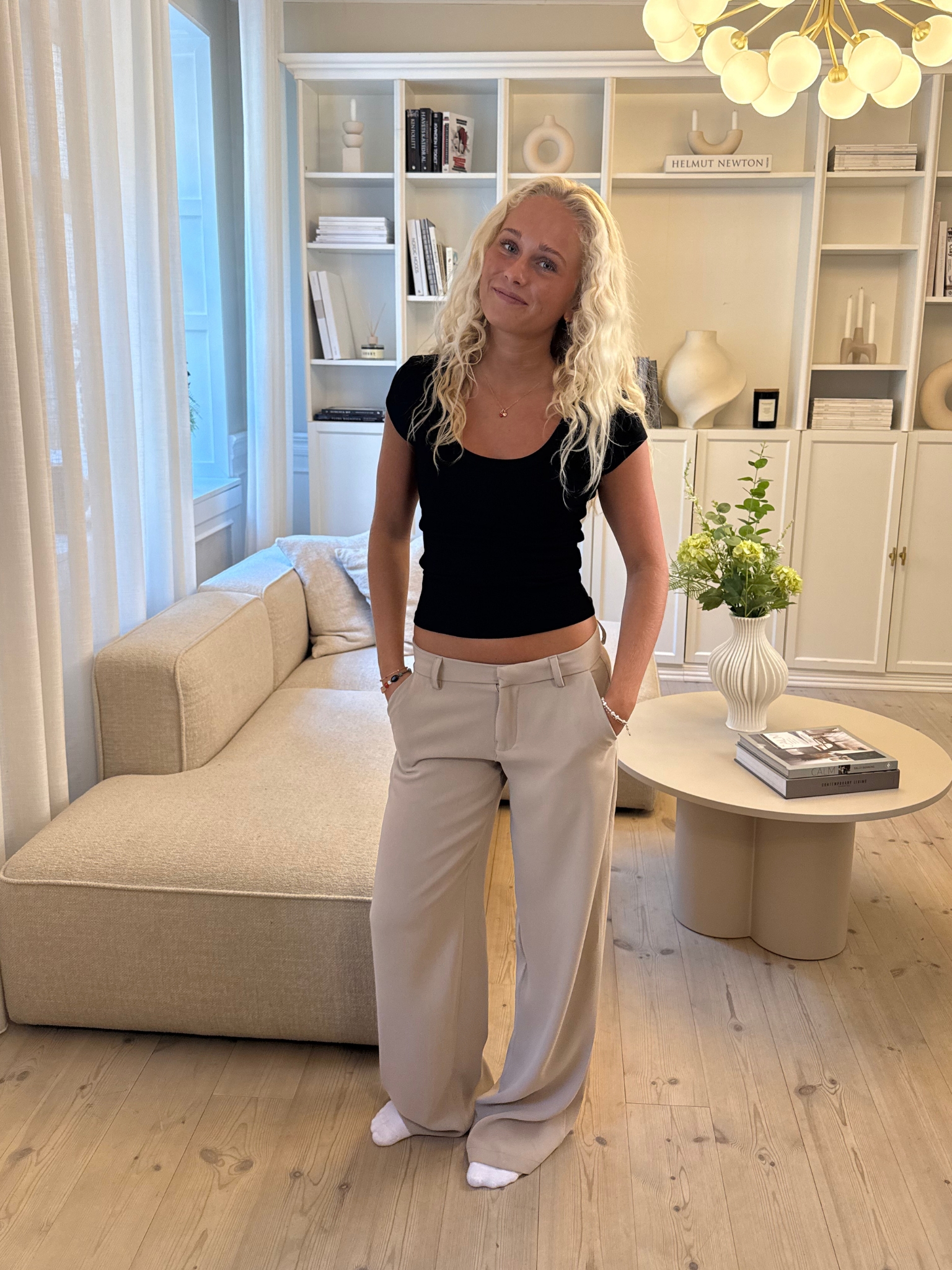 Jump on the stylish wave with Bella Suit Pants - TAUPE! These pants are made of a lovely, soft quality and have side pockets (because pockets are life, right? 😉). They fit nicely at the top and have a cool, loose fit in the legs, so you can be both comfy and chic – whether you're going to a café or hanging out with friends.
