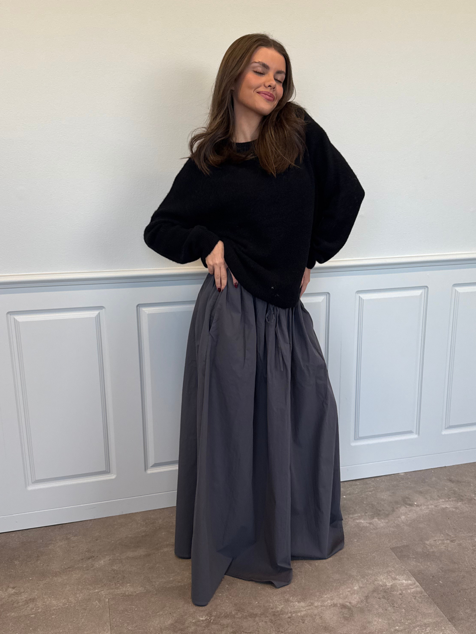 The finest, floor-length skirt with side pockets. Can be styled high or low waisted with the built-in drawstrings in the waist that can really adjust the size and fit - exactly as you want!