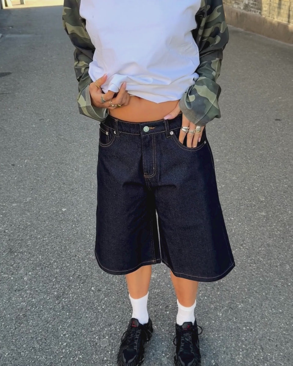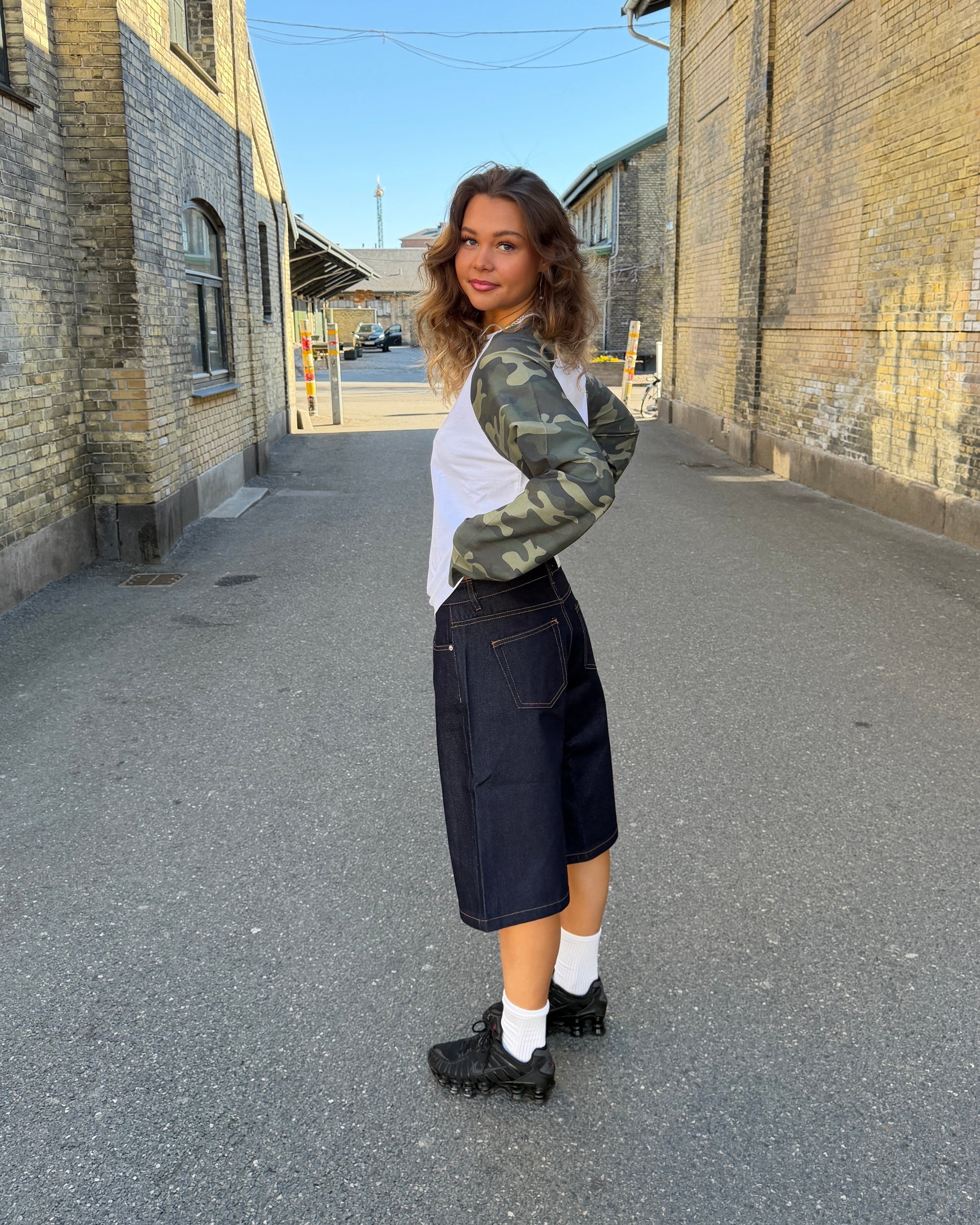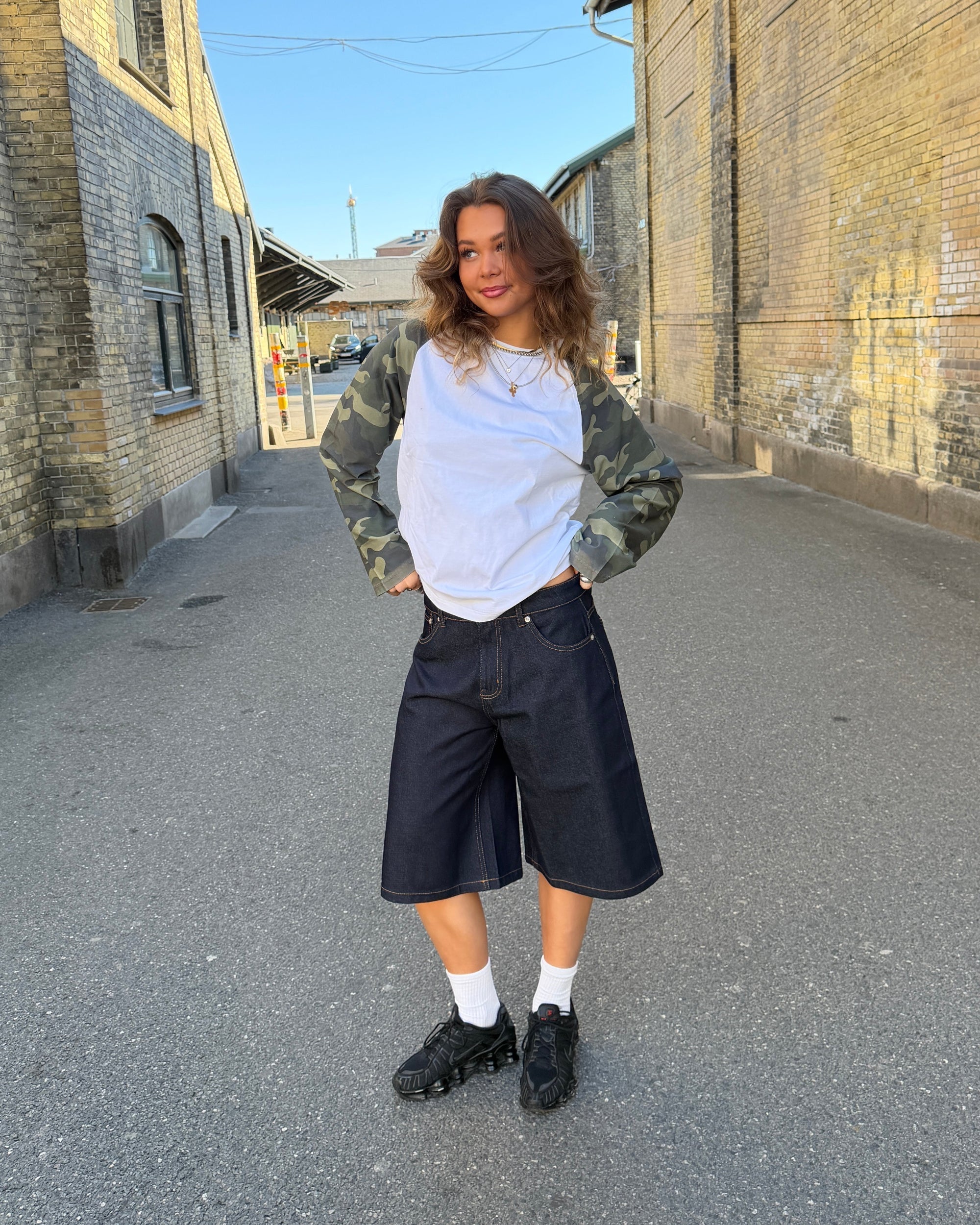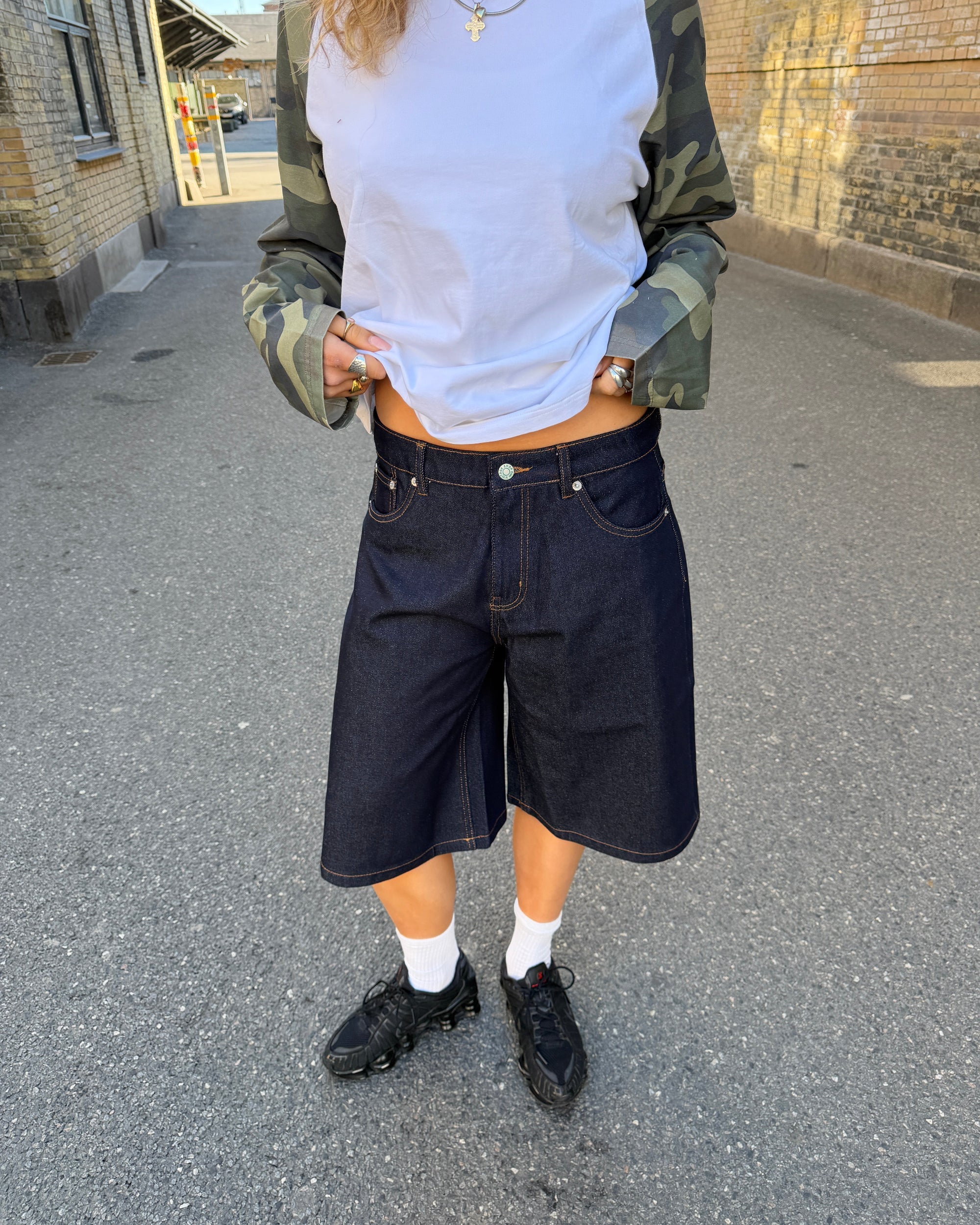 Er du til lidt mere længde end vores Olivia Jorts, er Frida Jorts lige noget for dig! Pæne denim jorts med baggy fit og god pasform