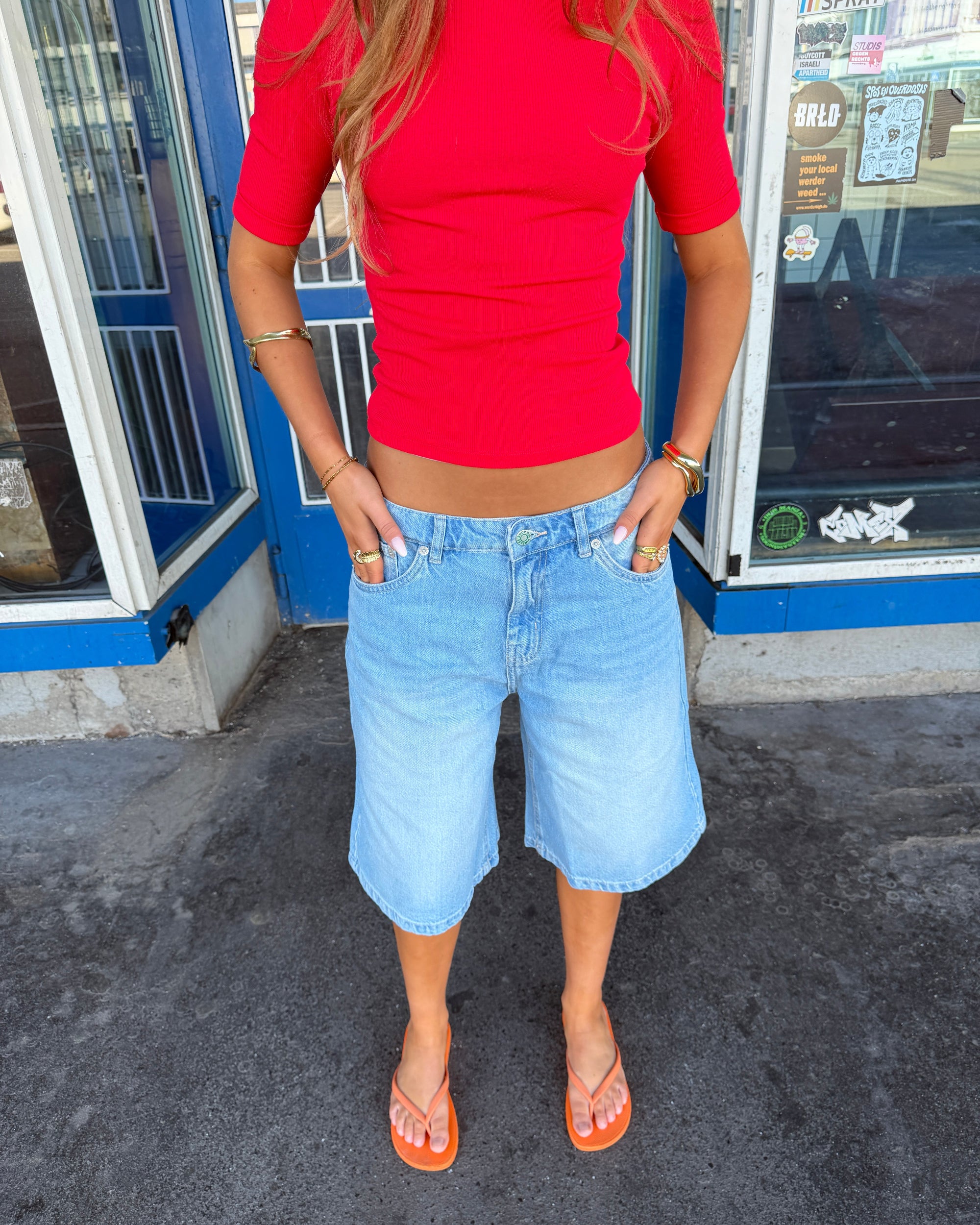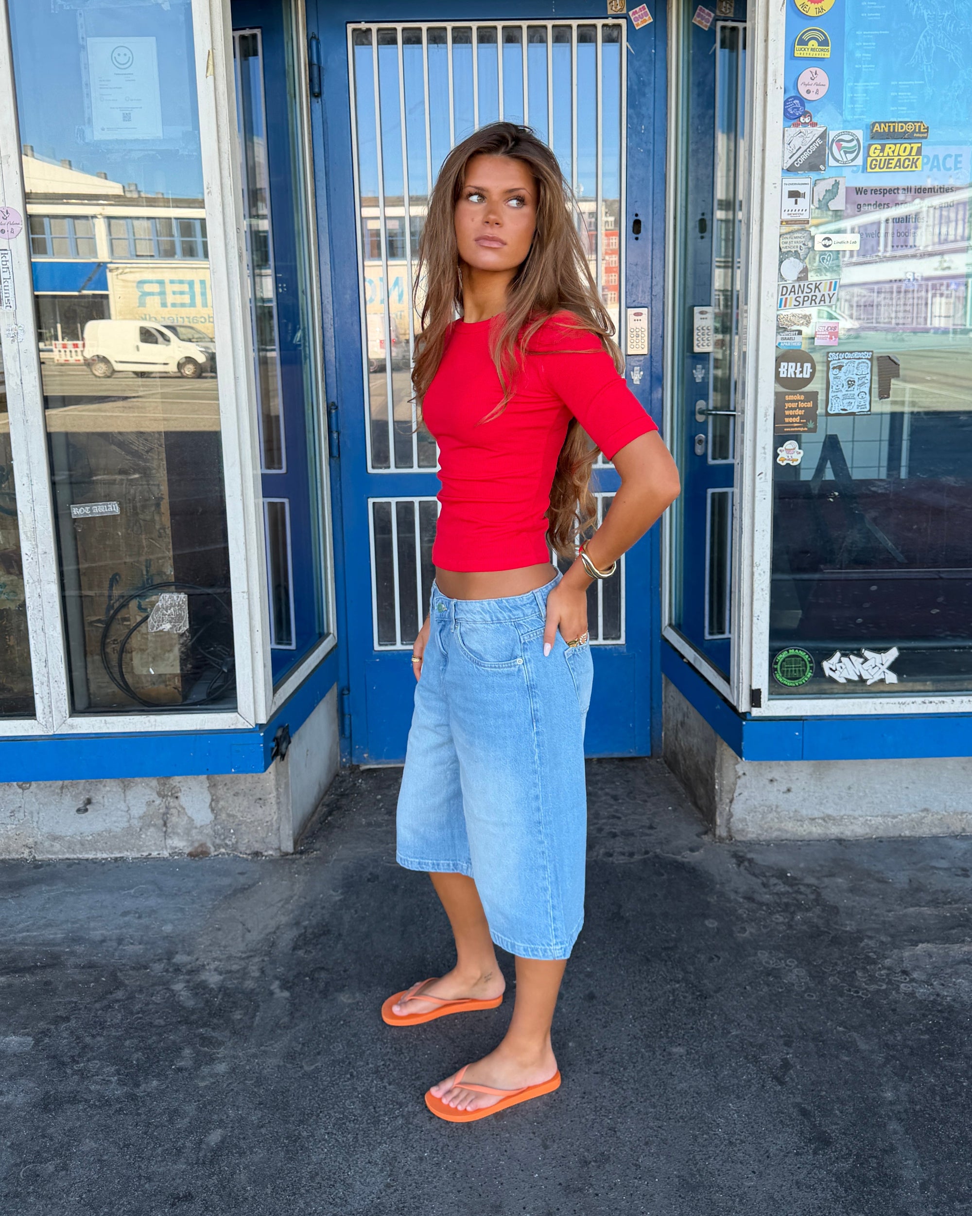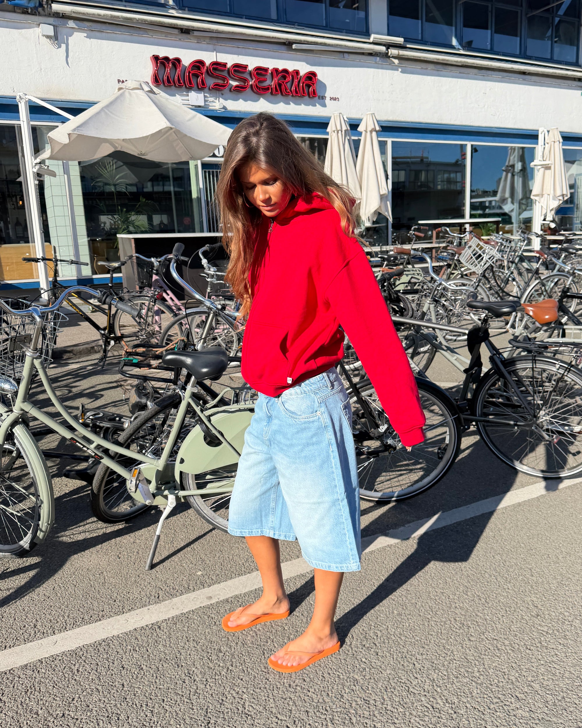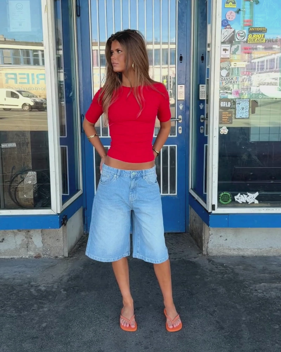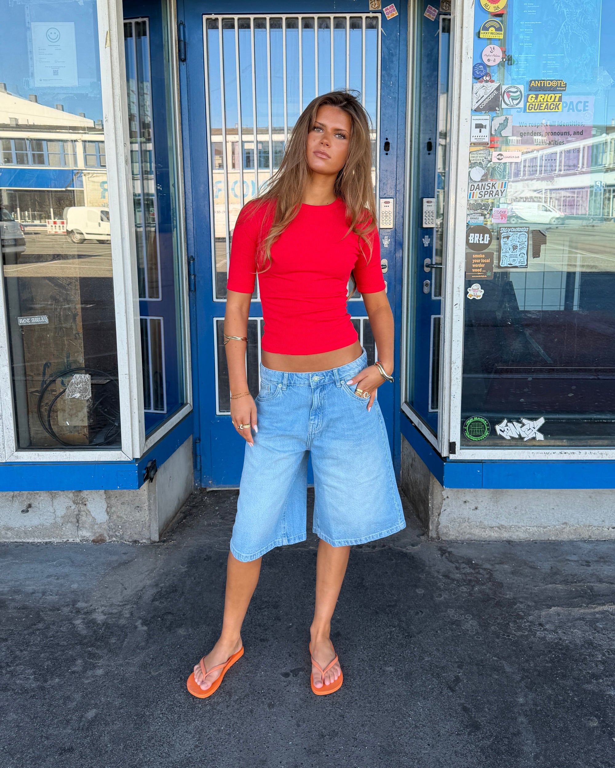 Er du til lidt mere længde end vores Olivia Jorts, er Frida Jorts lige noget for dig! Pæne denim jorts med baggy fit og god pasform