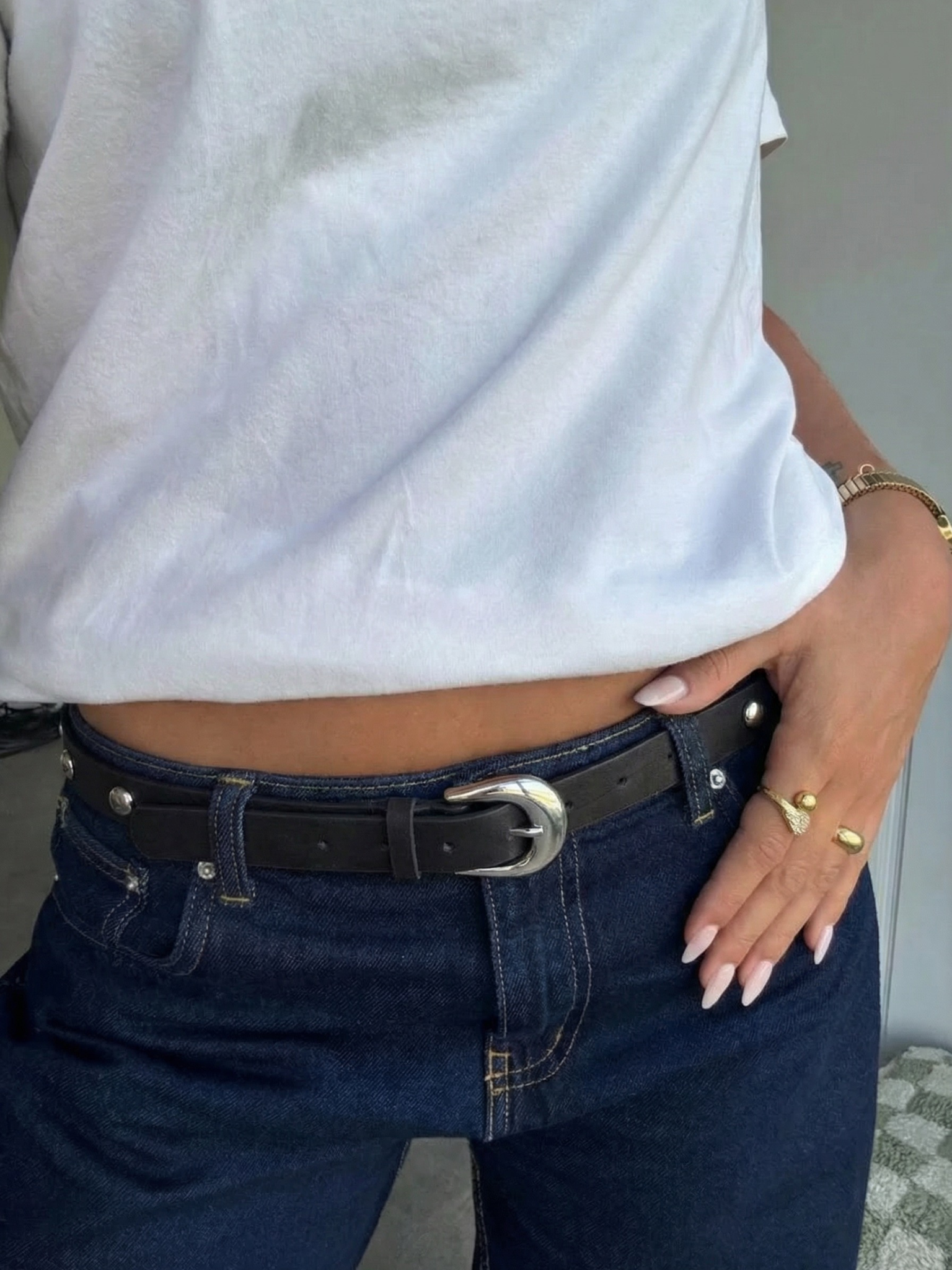 GESSICA RIVET BELT - BLACK/SILVER