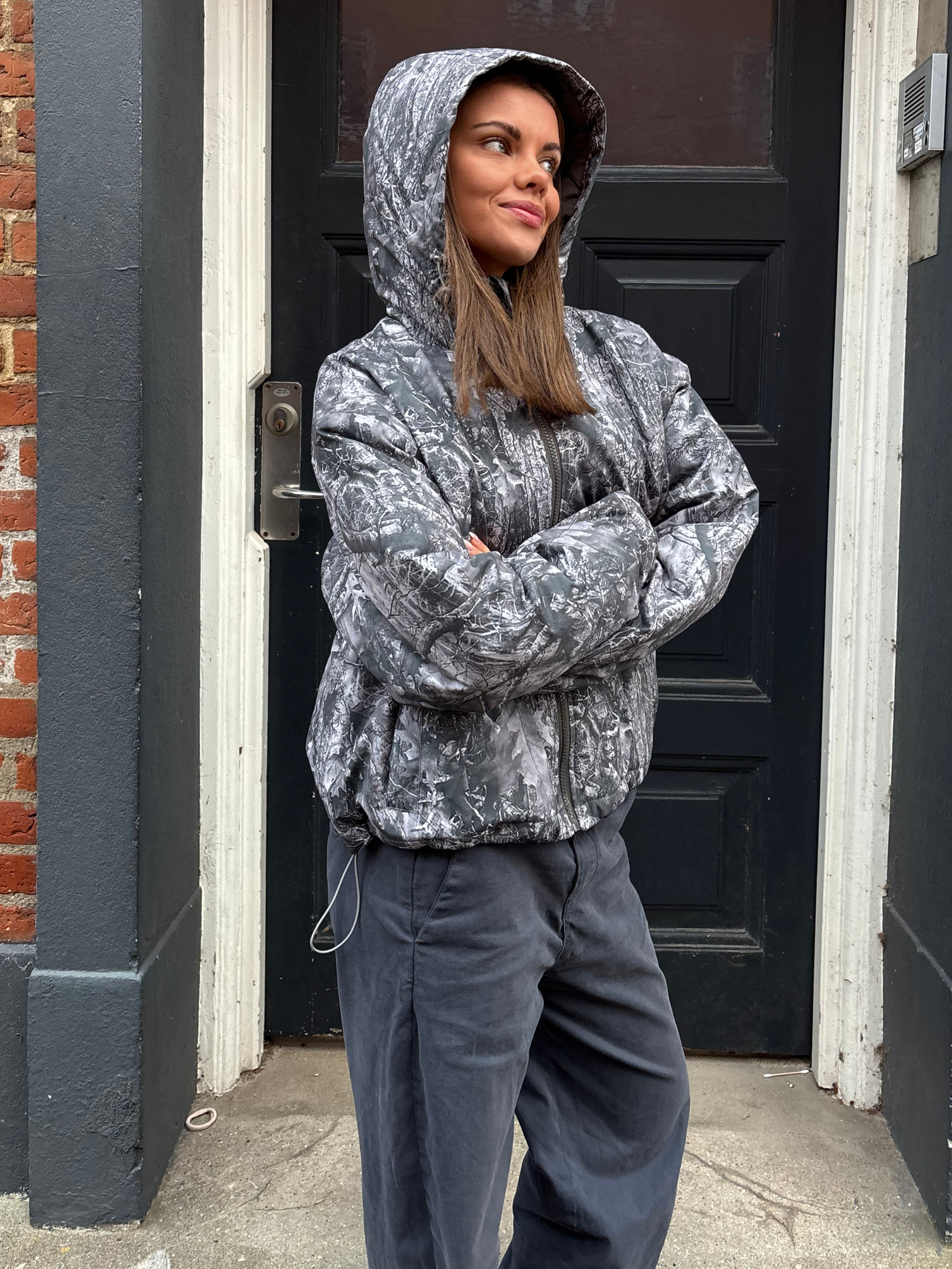 Really nice jacket with a soft surface. Perfect length that can be tightened at the bottom. Nice big hood..