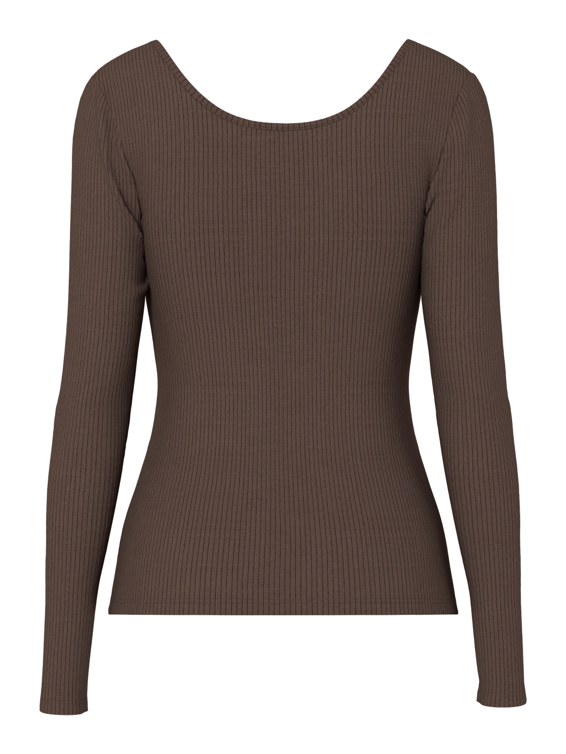 This slim fit top with a round neck and long sleeves is made from a soft and comfortable cotton fabric that ensures all-day comfort. The top has a dark brown shade called Hot fudge, which adds a stylish and versatile touch to the wardrobe. It is perfect for everyday wear and can be easily combined with different bottoms for a casual yet well-dressed look.
