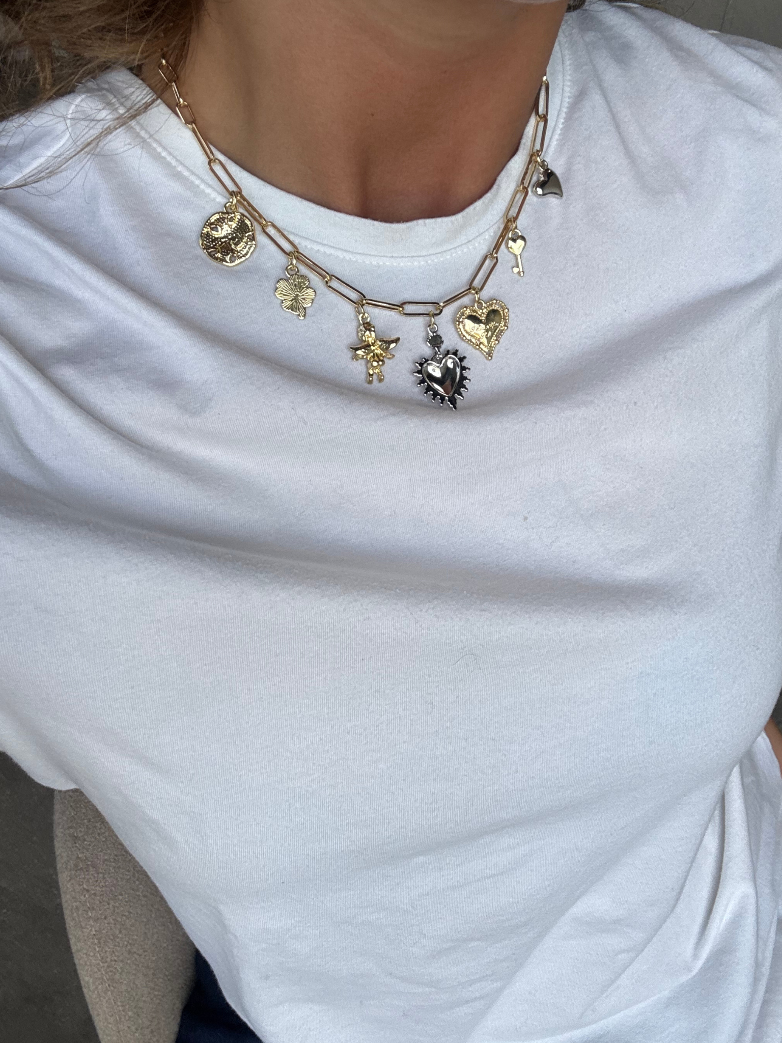 This set contains two necklaces in a beautiful gold color that will elegantly complement your outfit. The necklaces are made from a combination of iron, plastic and zinc, which provides a durable yet lightweight accessory that suits the youth style.