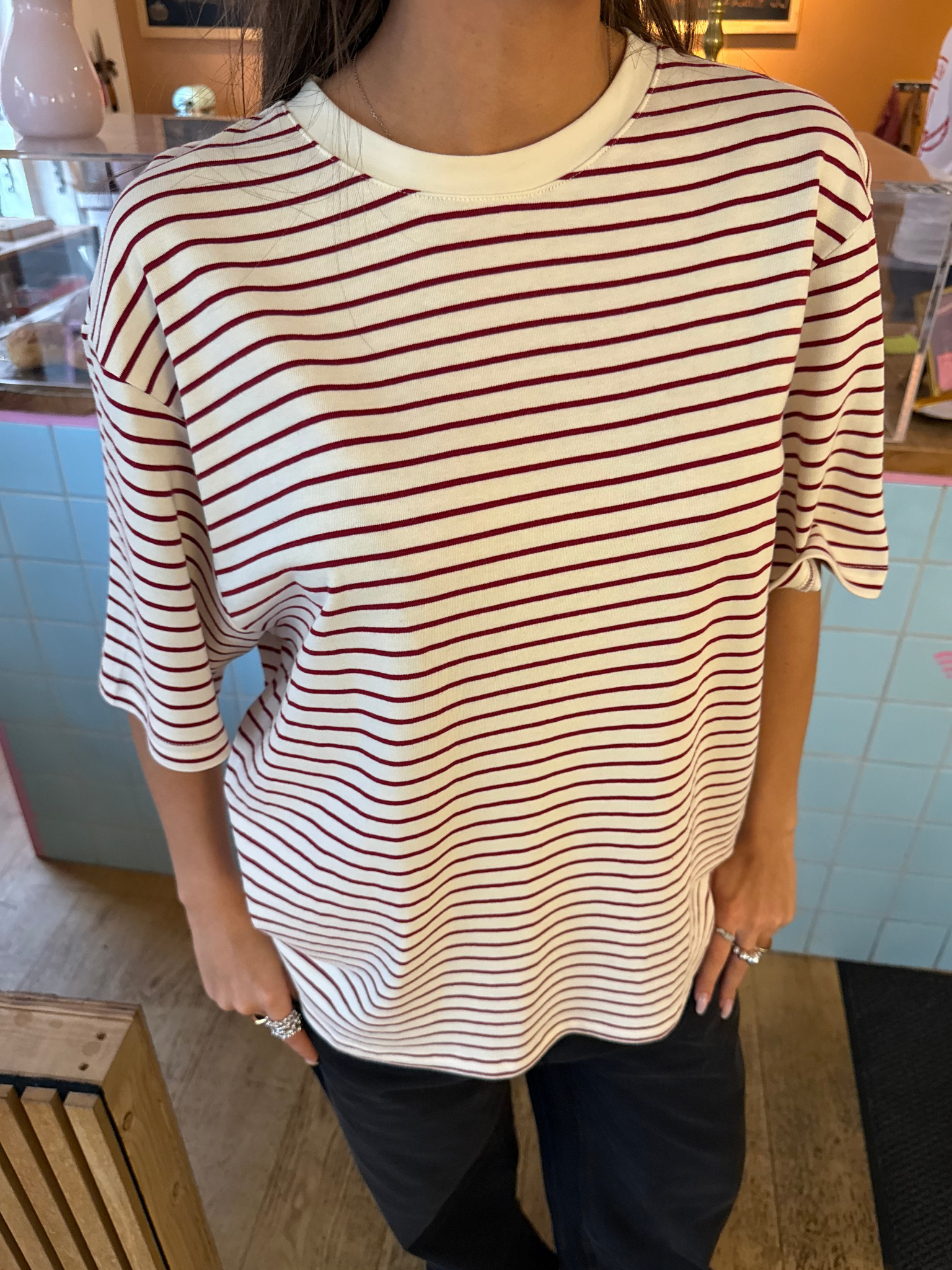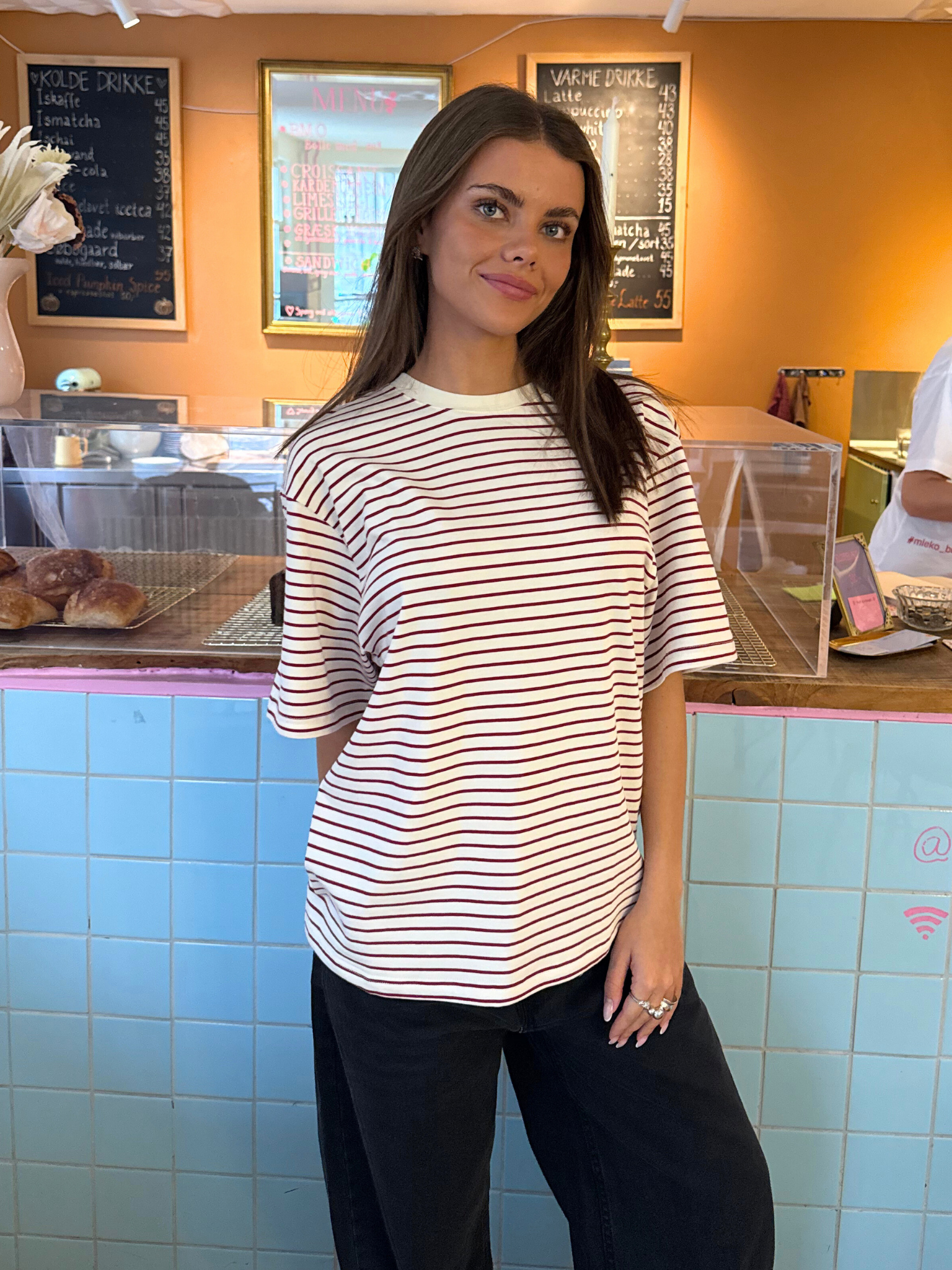 LYKKE STRIPE TEE - WHITE/WINE RED