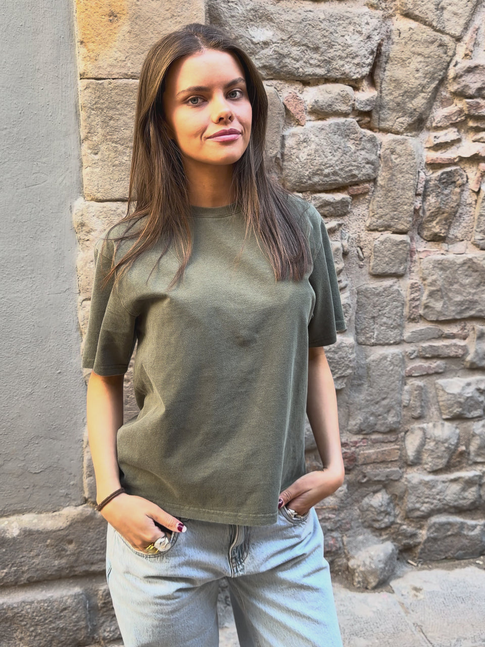 Nice oversized tee with short sleeves in a washed quality that gives a vintage look to your outfit.
