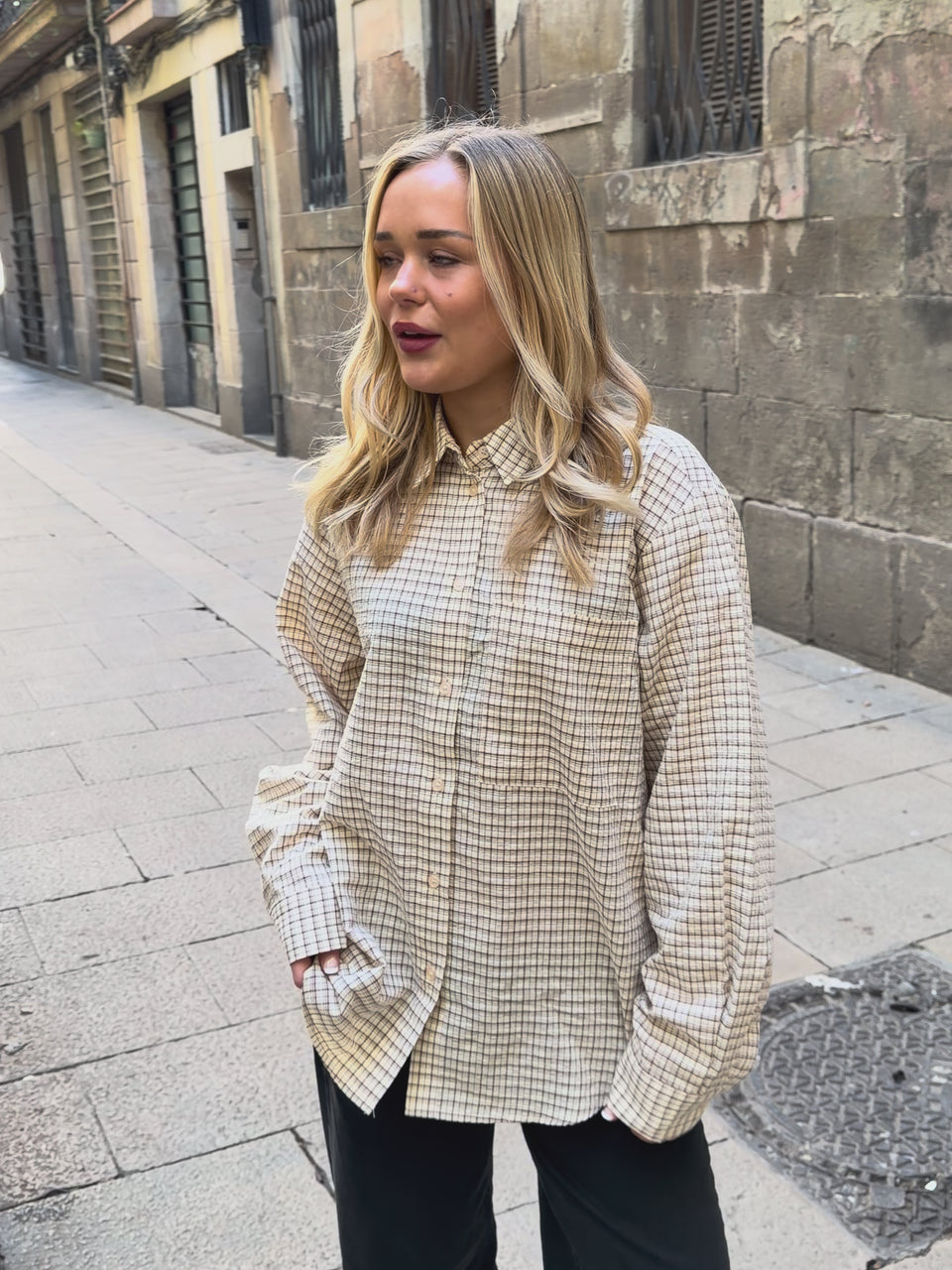 Checked boxfit shirt with long sleeves and oversized fit