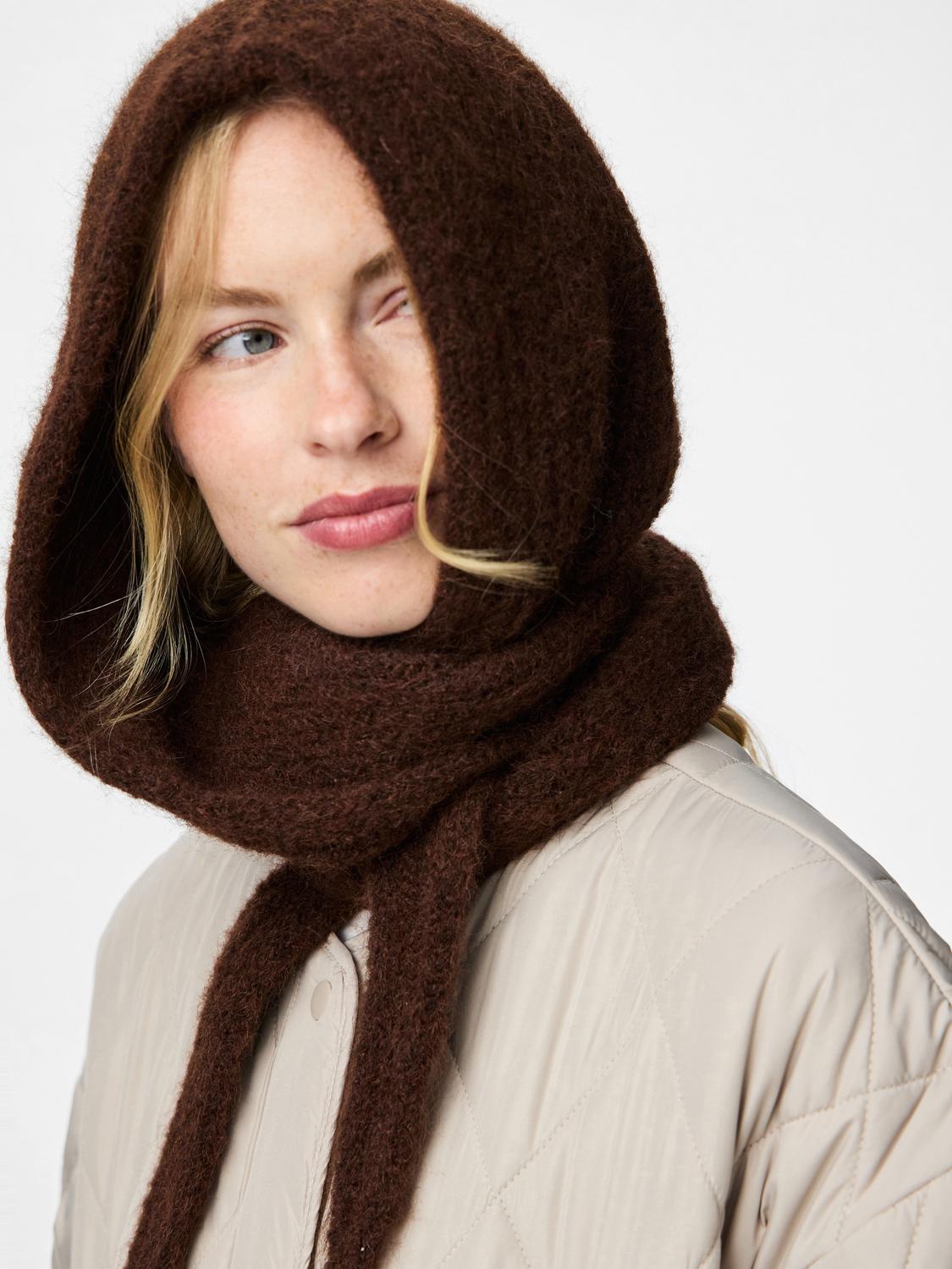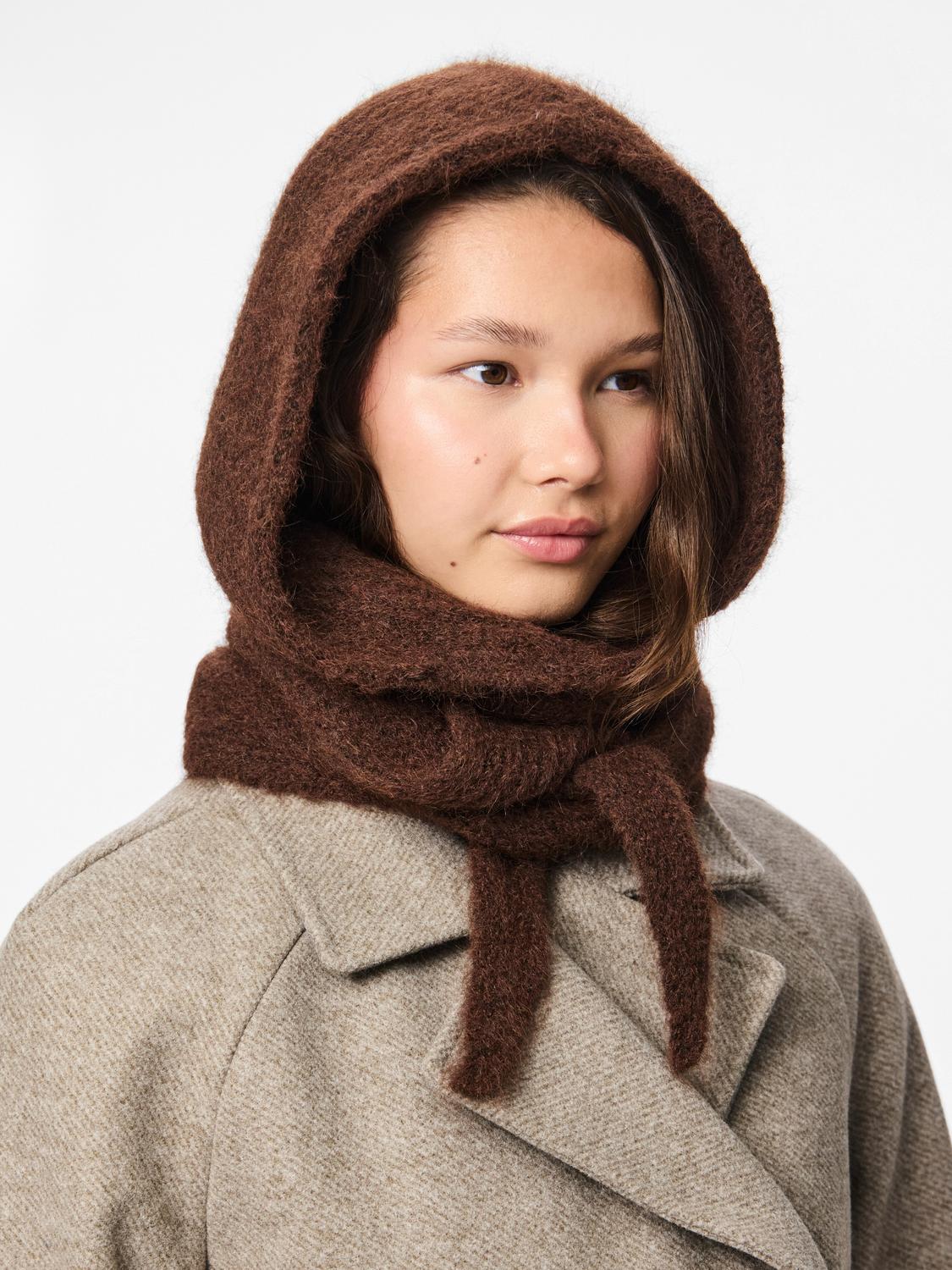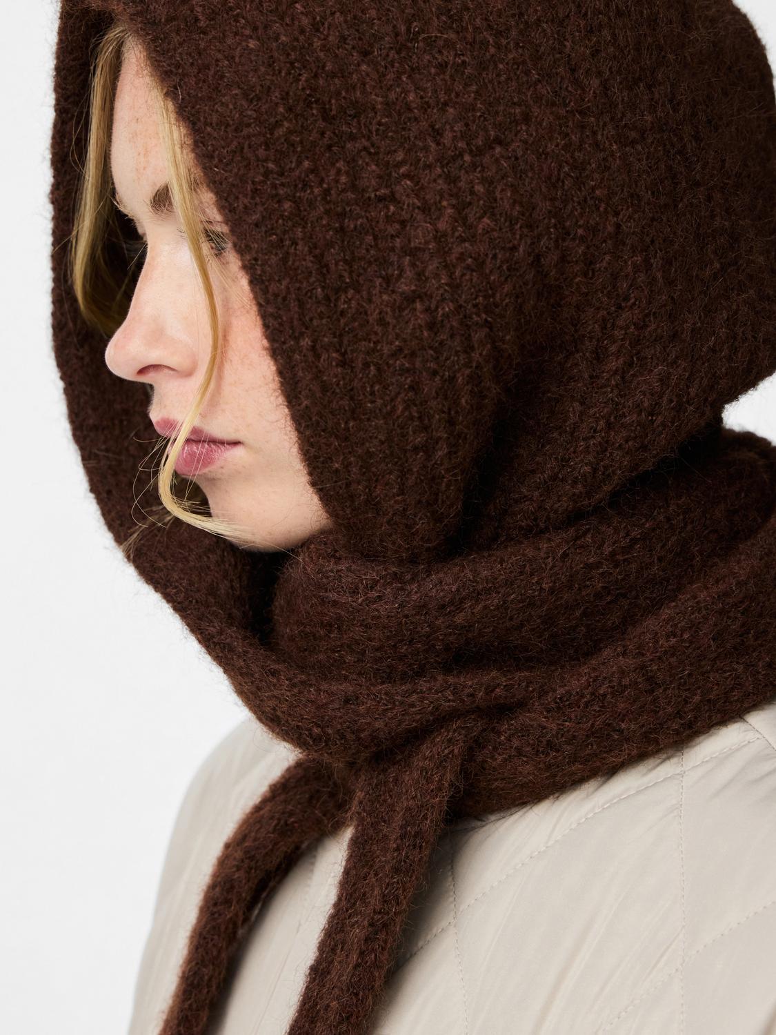 The classic bonnet has a beautiful structure with a cable knit pattern that gives a detailed and elegant look. The warm hat is made from a soft blend of recycled polyester, nylon and responsible wool, ensuring both comfort and sustainability. The hot fudge color adds a timeless and versatile touch, perfect for the cool season. Designed for young women, this hat is ideal for keeping warm in the fall and winter months, while also being stylish.