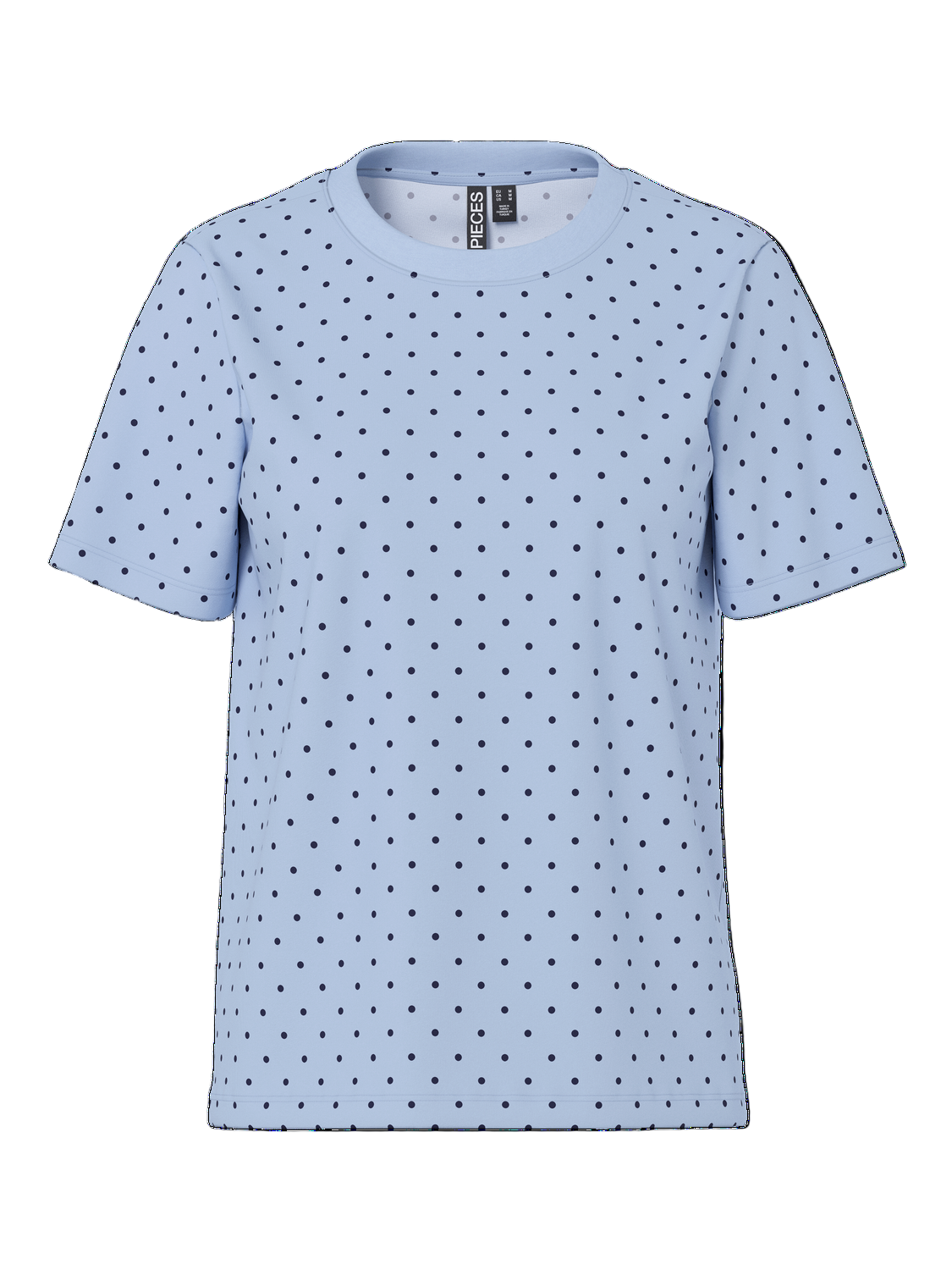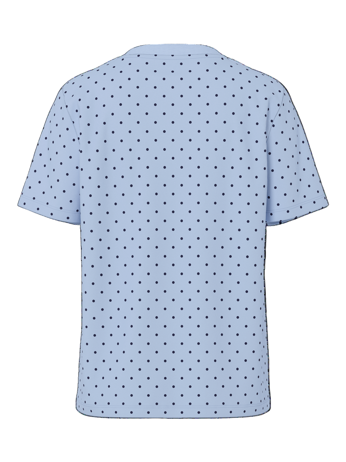 The lightweight and comfortable Dot Tee is perfect for everyday casual styles. With its round neck and short sleeves, it has a classic and timeless cut that suits most occasions. The maritime blue color is adorned with a discreet all-over print of small dots, which adds a stylish and feminine touch. Made of 100% cotton, this t-shirt offers both comfort and breathability, making it ideal for everyday wear.