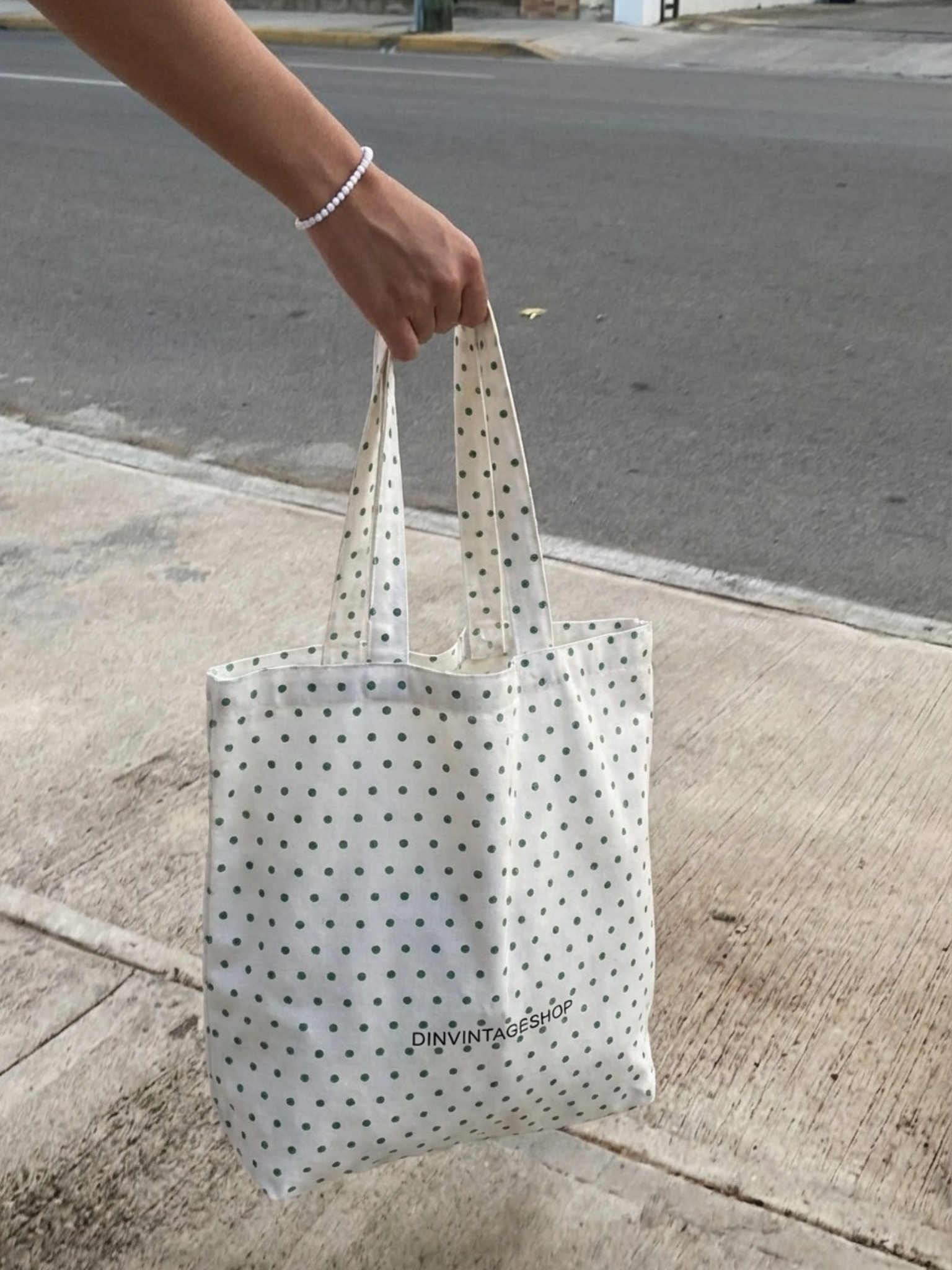 TOTEBAG - GREEN DOTS